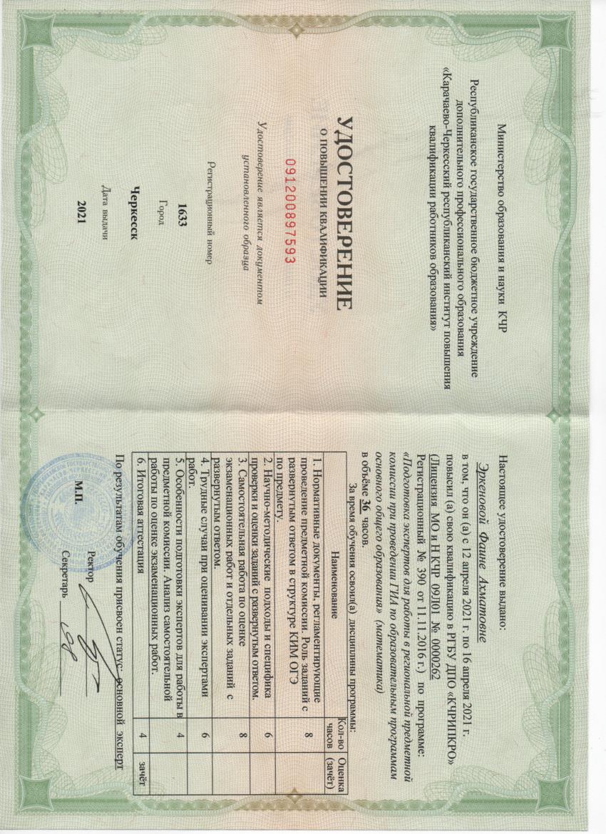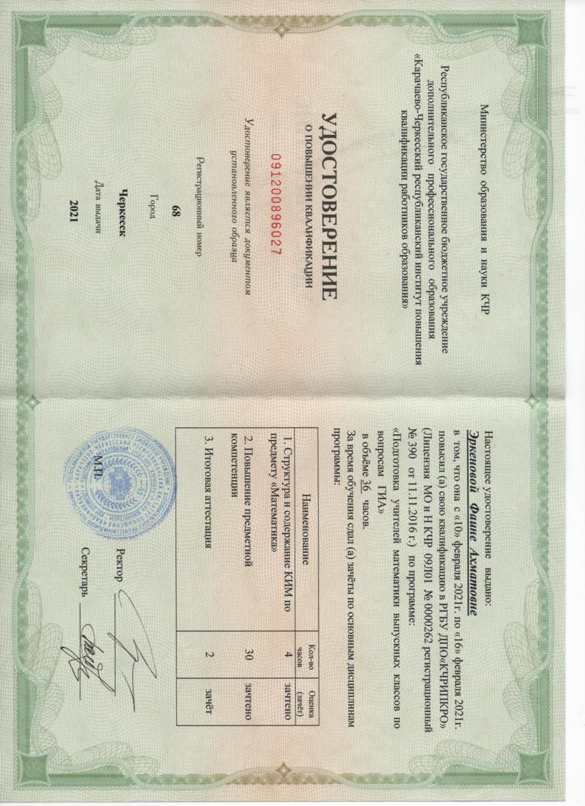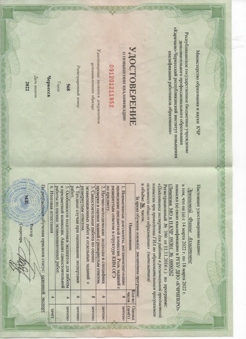 Обучение по курсу: Подготовка экспертов для работы в региональной предметной комиссии при проведении ГИА по образовательным программам основного общего образования (математика). Документ о повышении квалификации: скачать