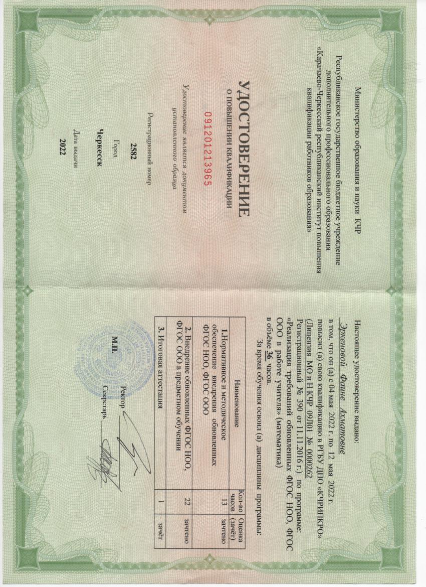 Обучение по курсу: Реализация требований обновленных ФГОС НОО, ФГОС ООО в работе учителя (математика). Документ о повышении квалификации: скачать