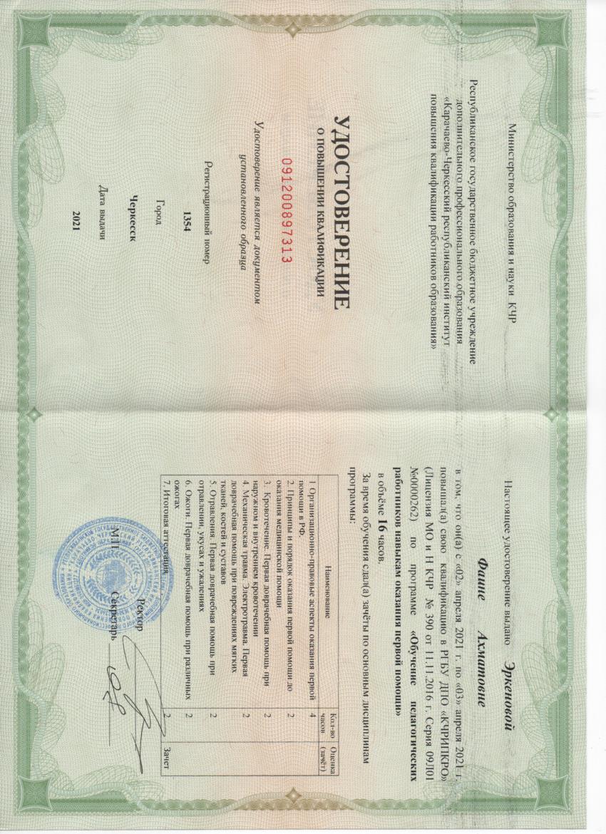Обучение по курсу: Обучение педагогических работников навыкам оказания первой помощи. Документ о повышении квалификации: скачать