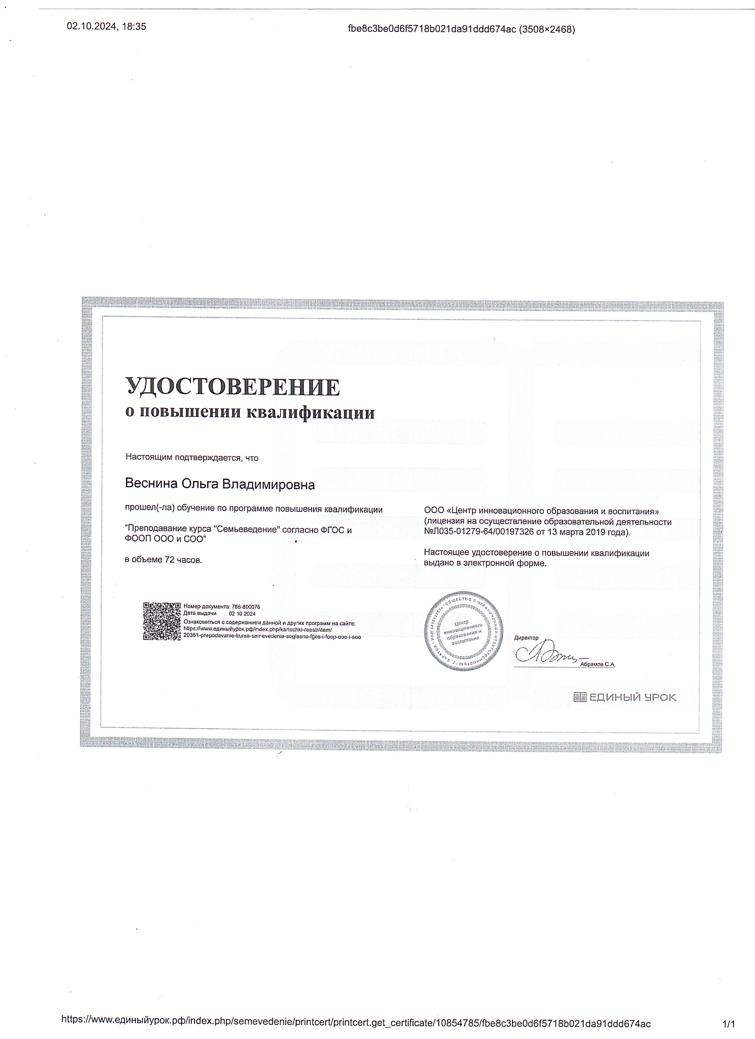 Обучение по курсу: Преподавание курса " Семьеведение". Документ о повышении квалификации: скачать