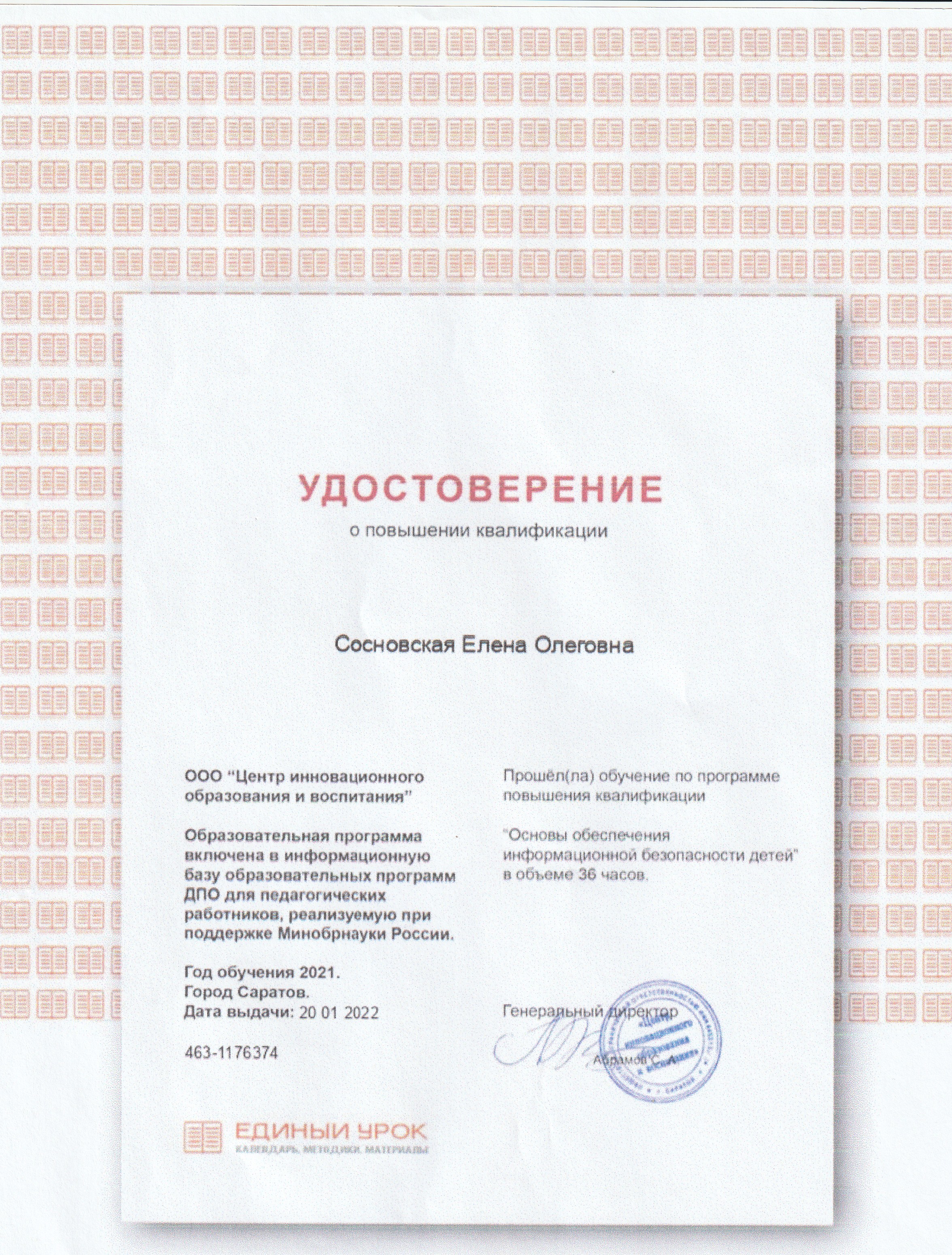 Обучение по курсу: "Основы обеспечения информационной безопасности детей" в объёме 36 часов. Документ о повышении квалификации: скачать