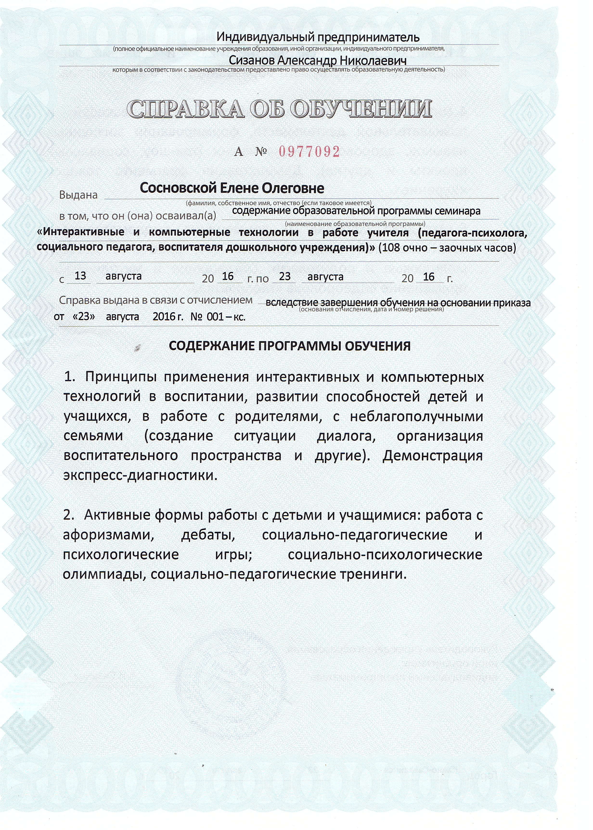 Обучение по курсу: "Интерактивные и компьютерные технологии в работе учителя (педагога-психолога, социального педагога, воспитателя дошкольного учреждения) 108 очно-заочных часов. Документ о повышении квалификации: скачать