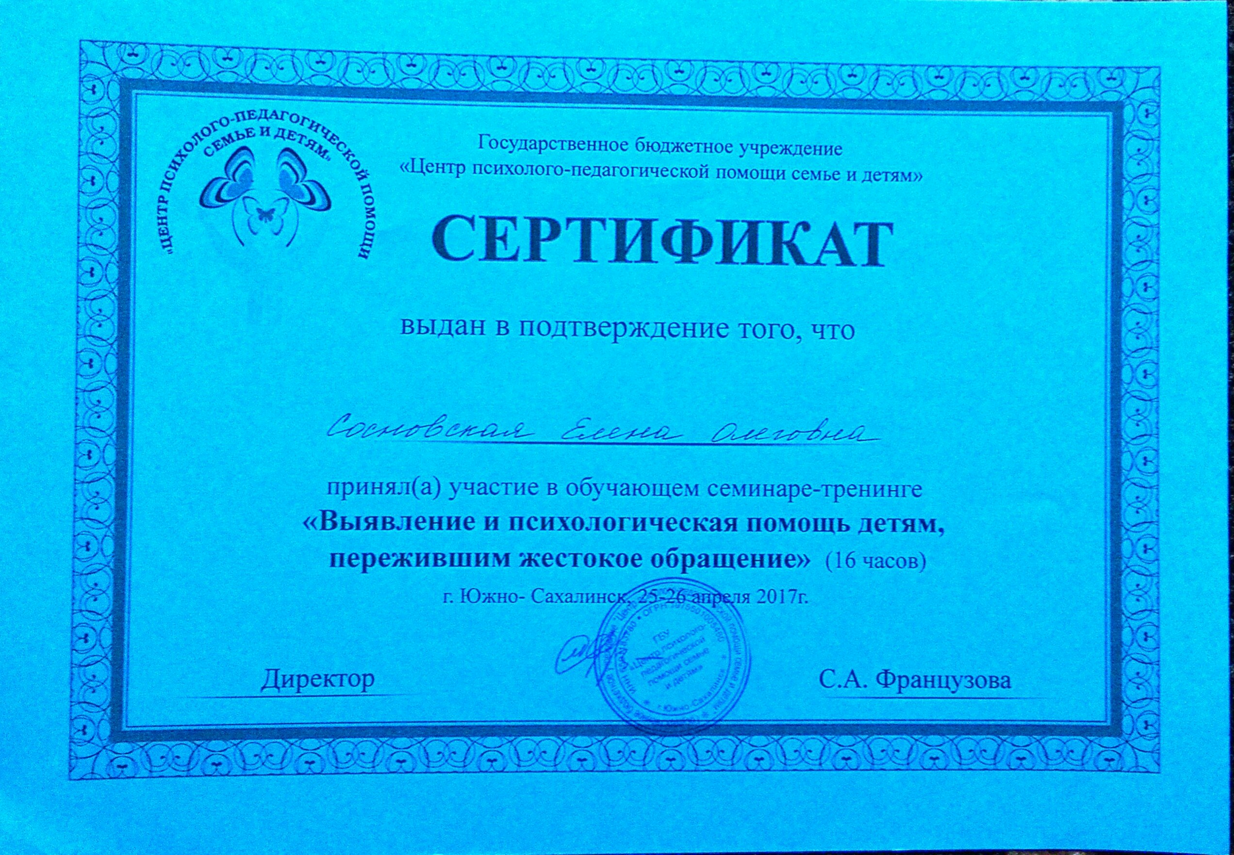 Обучение по курсу: "Выявление и психологическая помощь детям, пережившим жестокое обращение" (16 часов). Документ о повышении квалификации: скачать