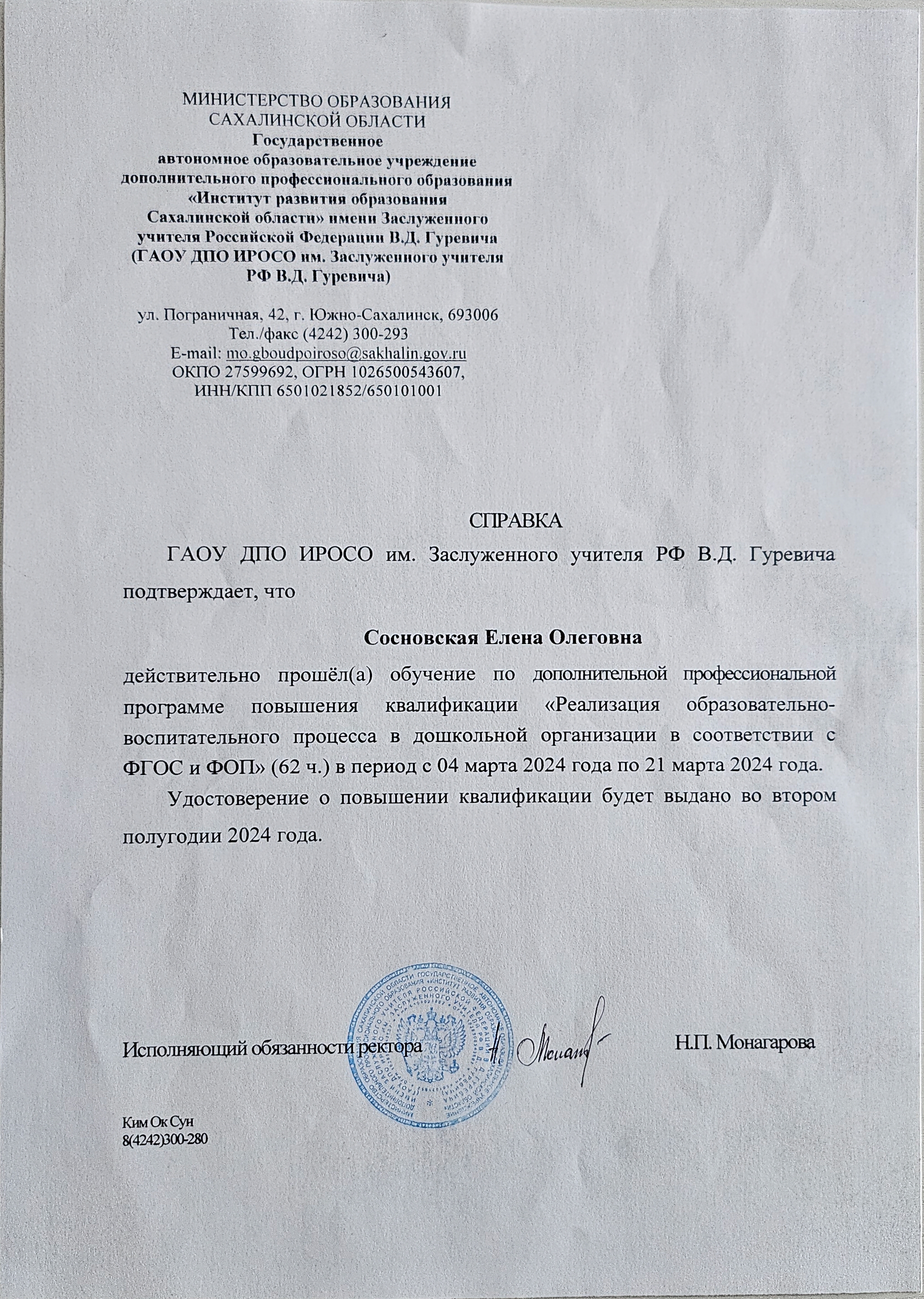 Обучение по курсу: Реализация образовательно-воспитательного процесса в дошкольной организации в соответствии с ФГОС и ФОП. Документ о повышении квалификации: скачать