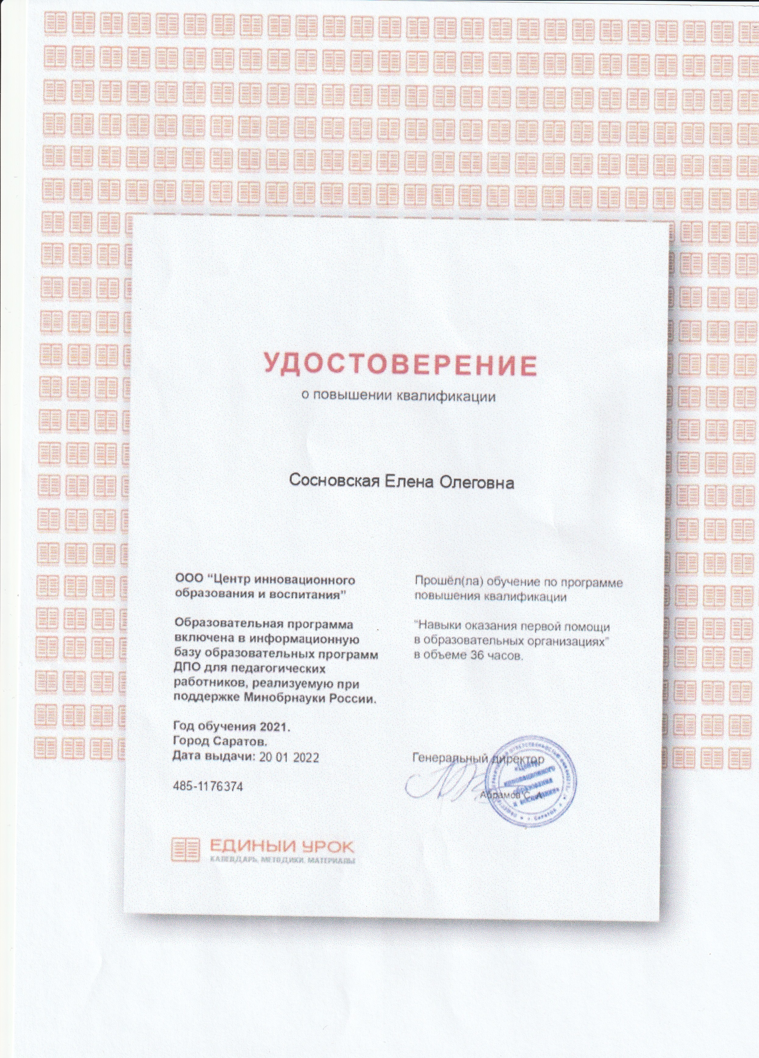 Обучение по курсу: "Навыки оказания первой помощи в образовательных организациях" в объёме 36 часов. Документ о повышении квалификации: скачать
