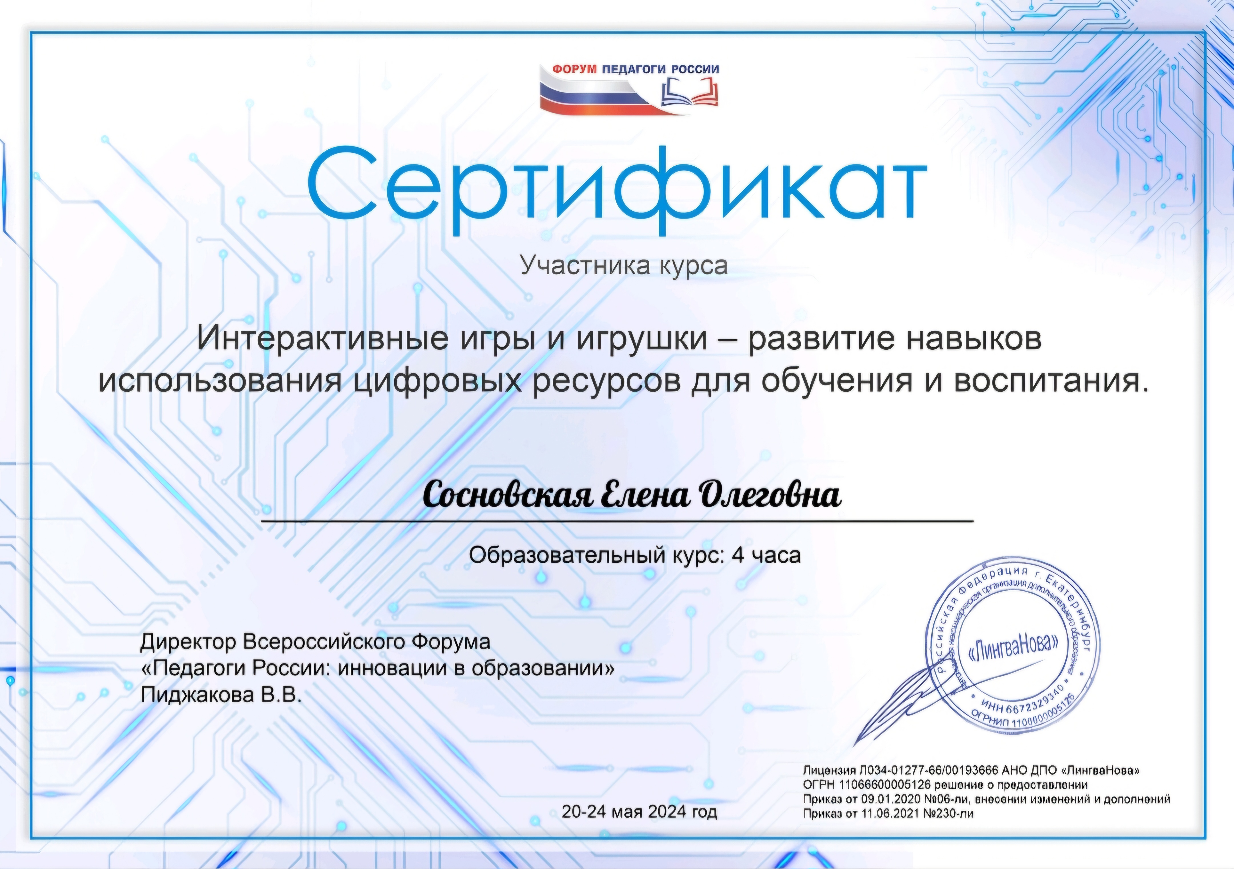 Обучение по курсу: Интерактивные игры и игрушки — развитие навыков использования цифровых ресурсов для обучения и воспитания.. Документ о повышении квалификации: скачать