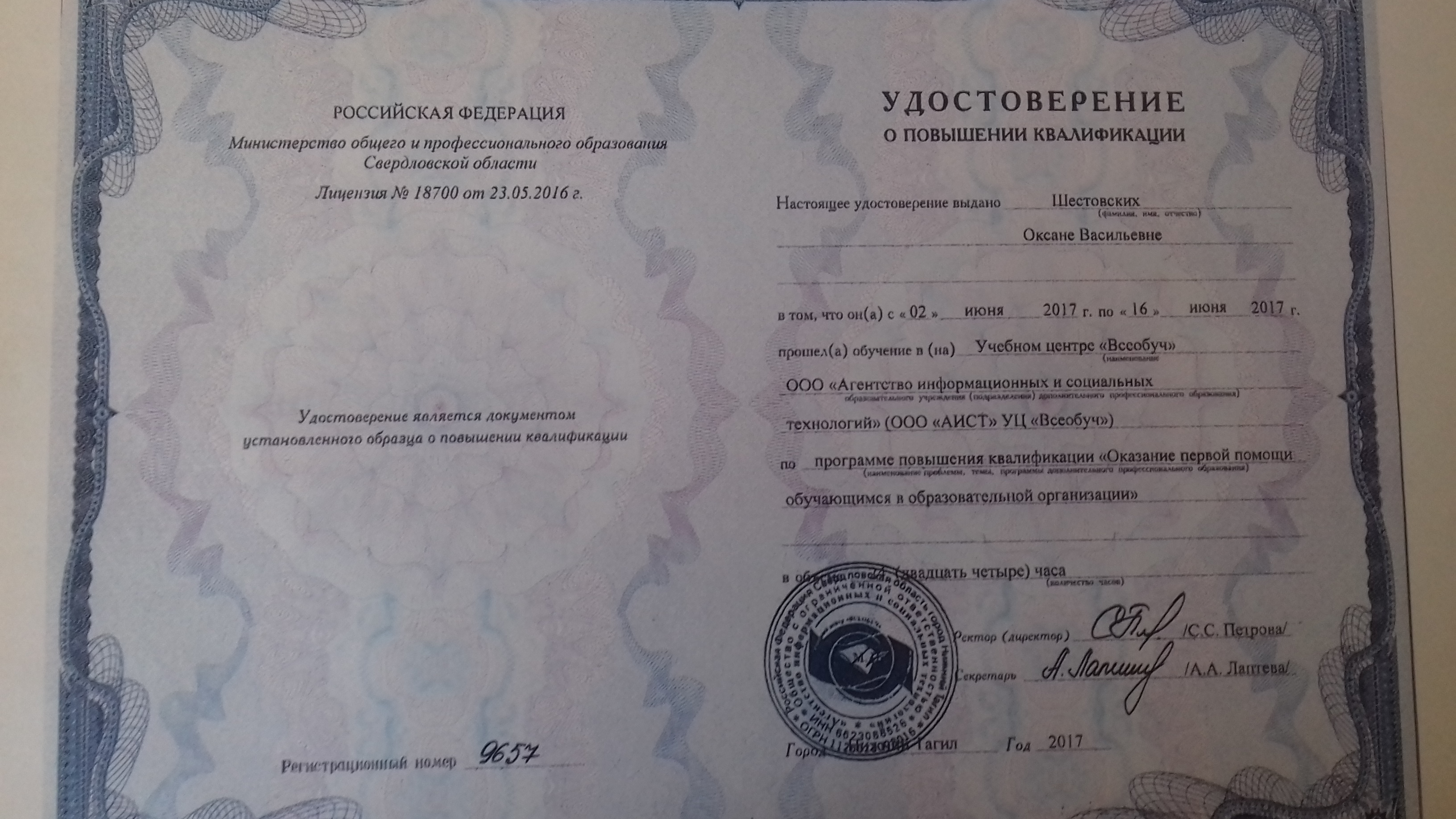 Обучение по курсу: «Оказание первой помощи обучающимся в образовательной организации». Документ о повышении квалификации: скачать