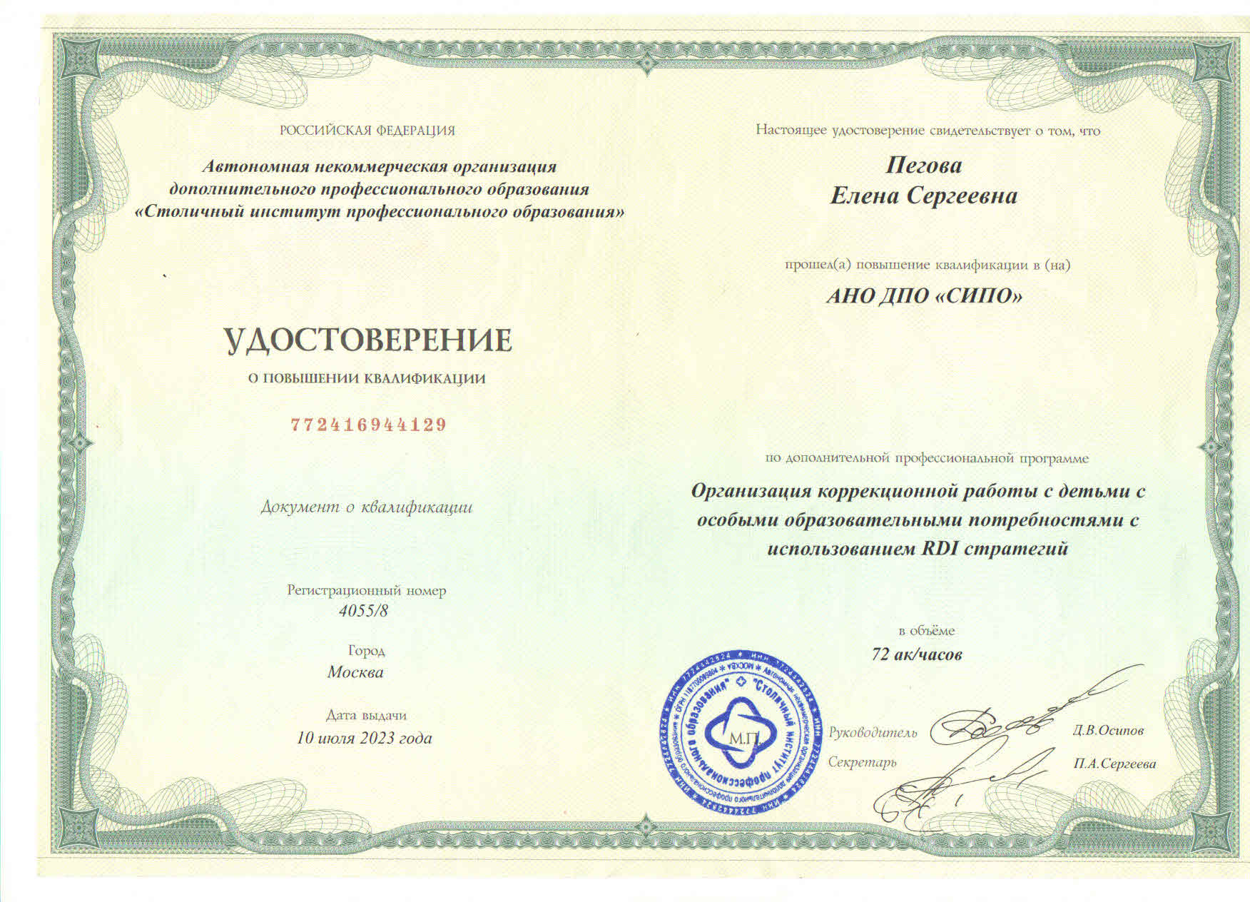 Обучение по курсу: Организация коррекционной работы с детьми с особыми образовательными потребностями с использованием RDI стратегий. Документ о повышении квалификации: скачать