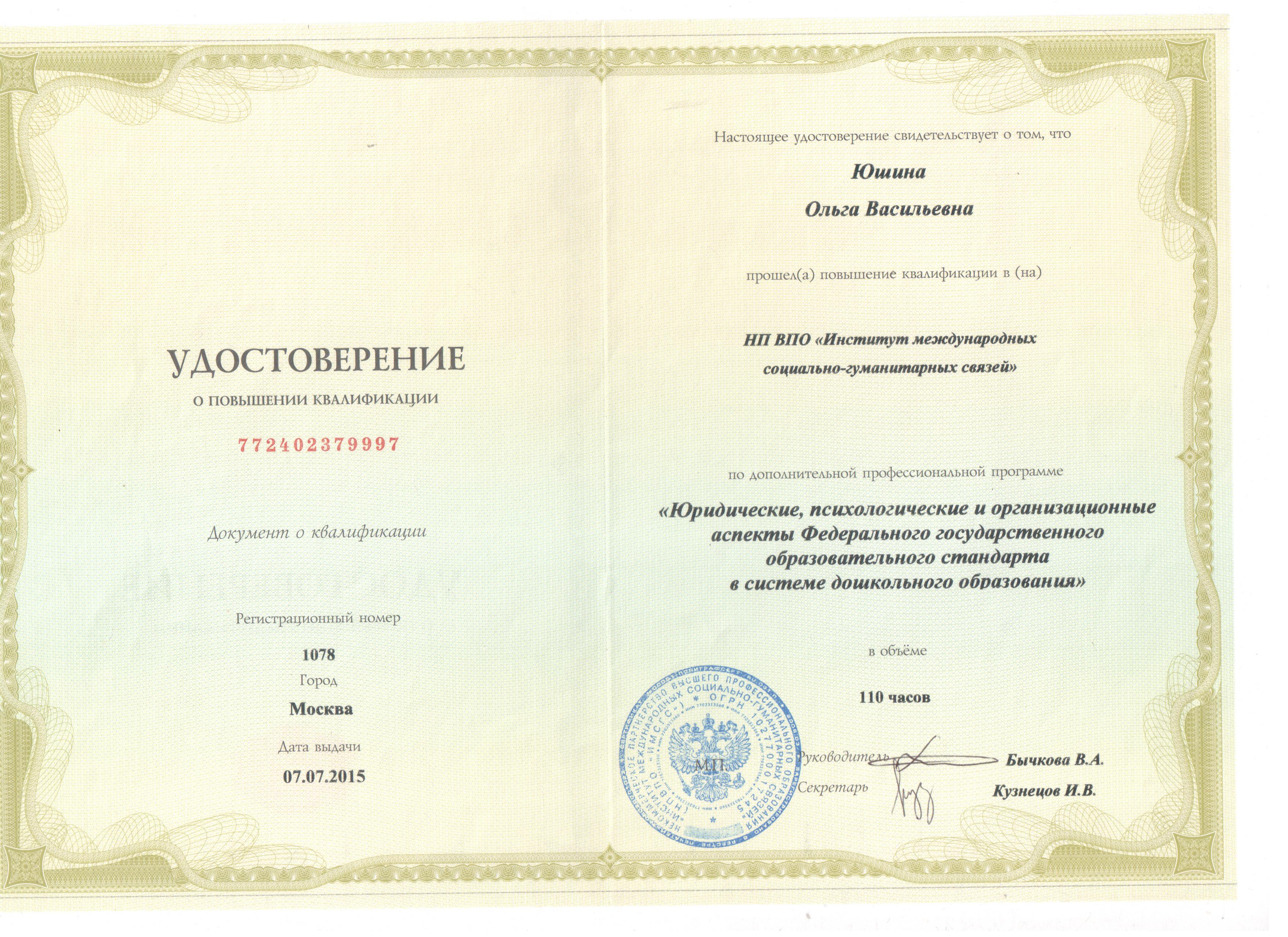 Обучение по курсу: " Юридические , психологические и организационные аспекты Федерального государственного образовательного стандарта в системе образования". Документ о повышении квалификации: скачать