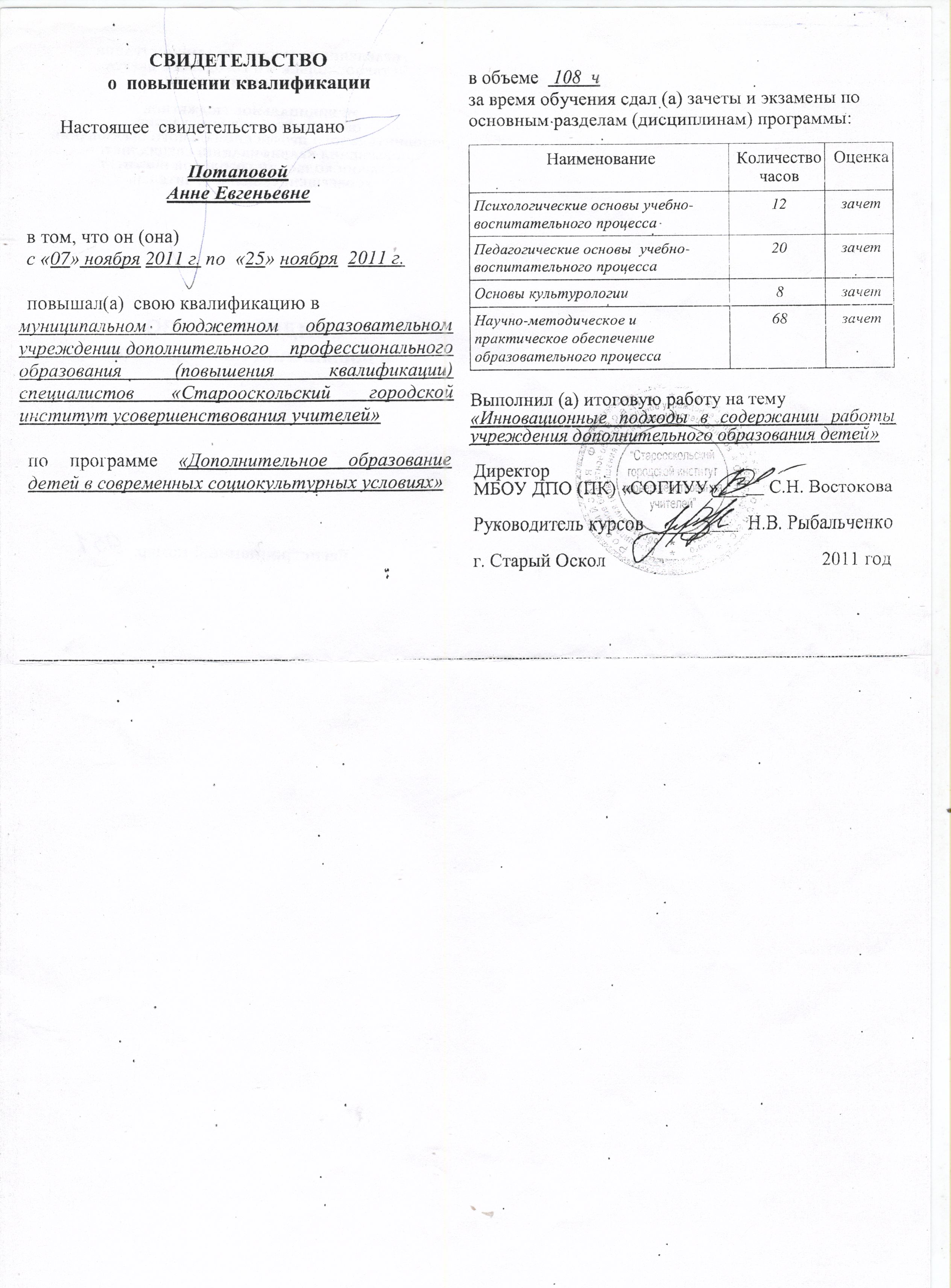 Обучение по курсу: Дополнительное образование детей в современных социокультурных условиях. Документ о повышении квалификации: скачать