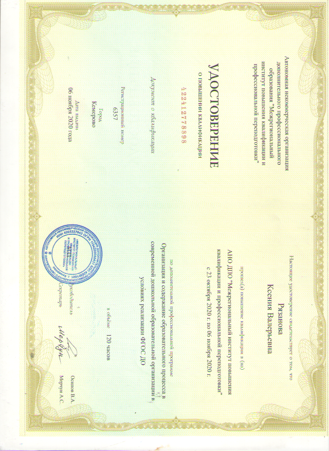 Обучение по курсу: Организация и содержание образовательного процесса в современной дошкольной образовательной организации в условиях реализации ФГОС ДО". Документ о повышении квалификации: скачать