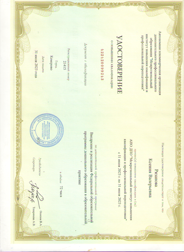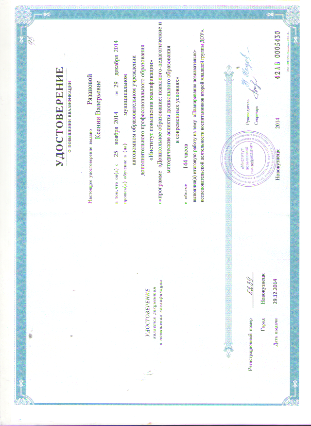 Обучение по курсу: Дошкольное обазование: психолого педагогические и методические аспекты дошкольного образования в современных условиях.. Документ о повышении квалификации: скачать