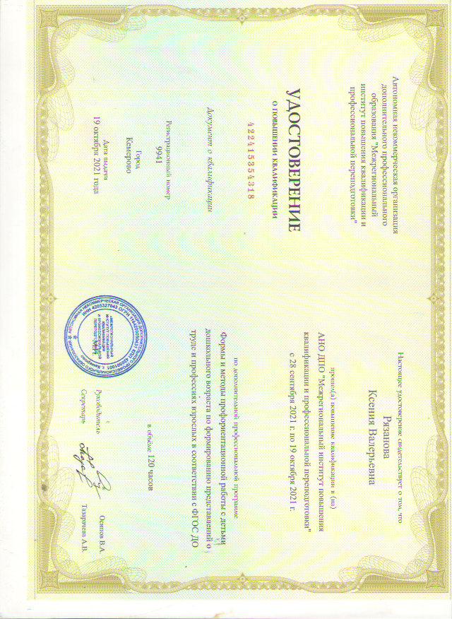 Обучение по курсу: Формы и методы профориентационной работы с детьми дошкольного возраста по формированию представлений о труде и профессиях взрослых в соответствии с ФГОС ДО. Документ о повышении квалификации: скачать