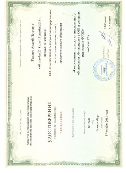 Обучение по курсу: "Современные технологии инклюзивного образования обучающихся с ОВЗ в условиях реализации ФГОС". Документ о повышении квалификации: скачать