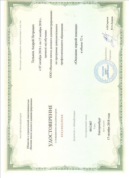 Обучение по курсу: "Оказание первой помощи". Документ о повышении квалификации: скачать