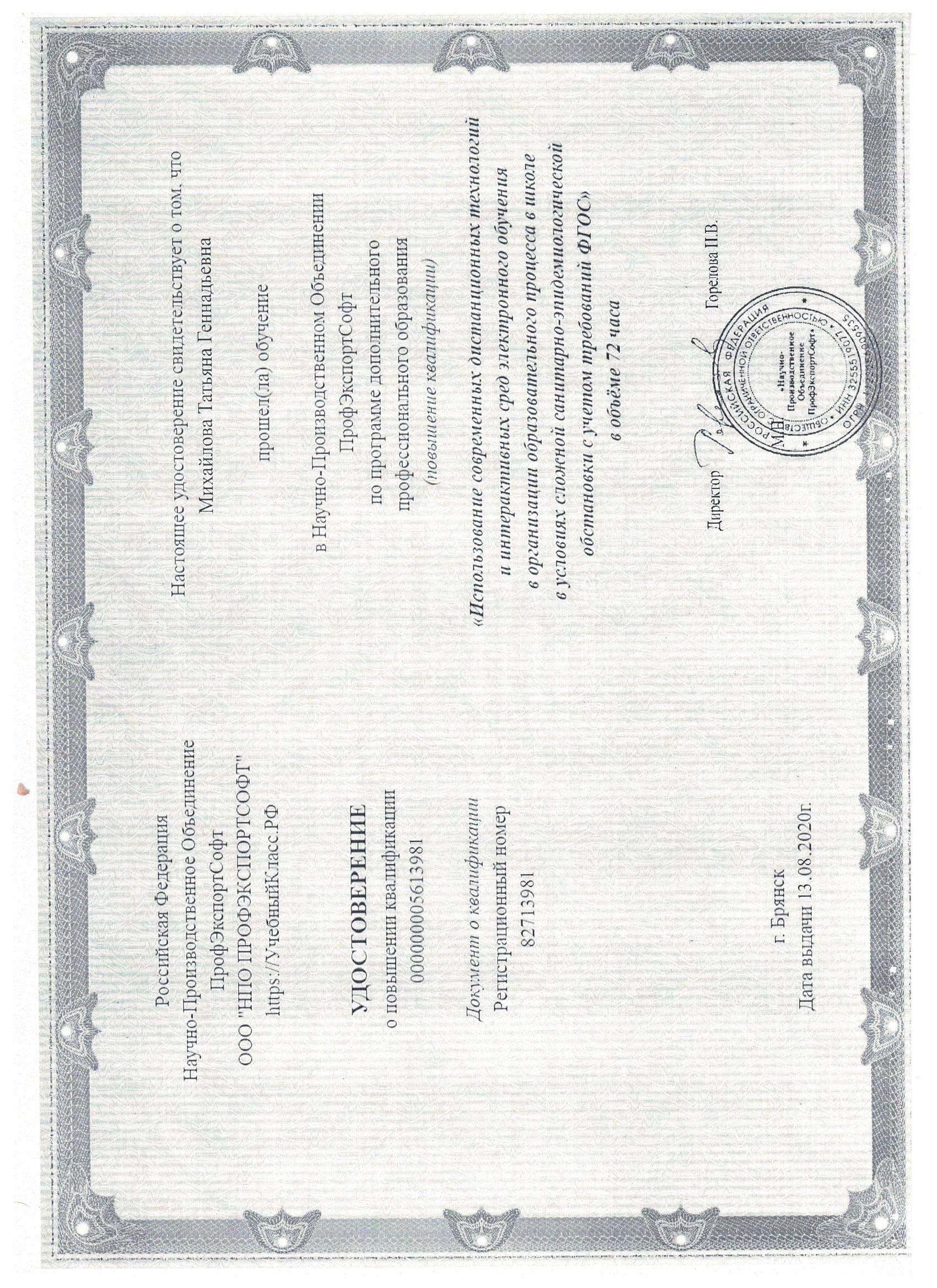 Обучение по курсу: Использование современных дистанционных технологий и интерактивных сред электронного обучения в организации образовательного процесса в школе в условиях сложной санитарно-эпидемиологической обстановки с учетом требований ФГОС . Документ о повышении квалификации: скачать