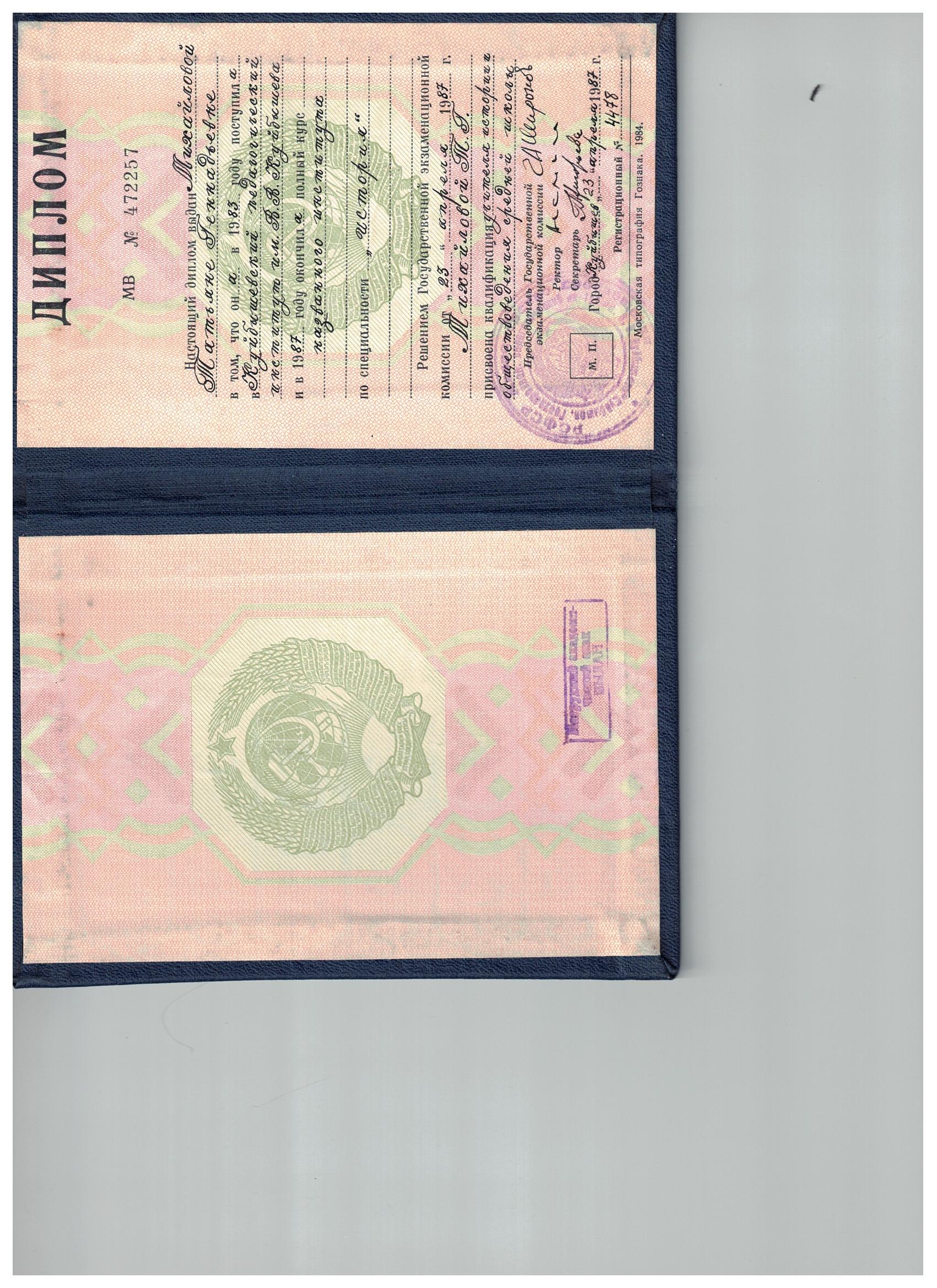 Образование по специальности: история. Присвоена квалификация: учитель истории и обществоведения. Документ о получении образования: скачать