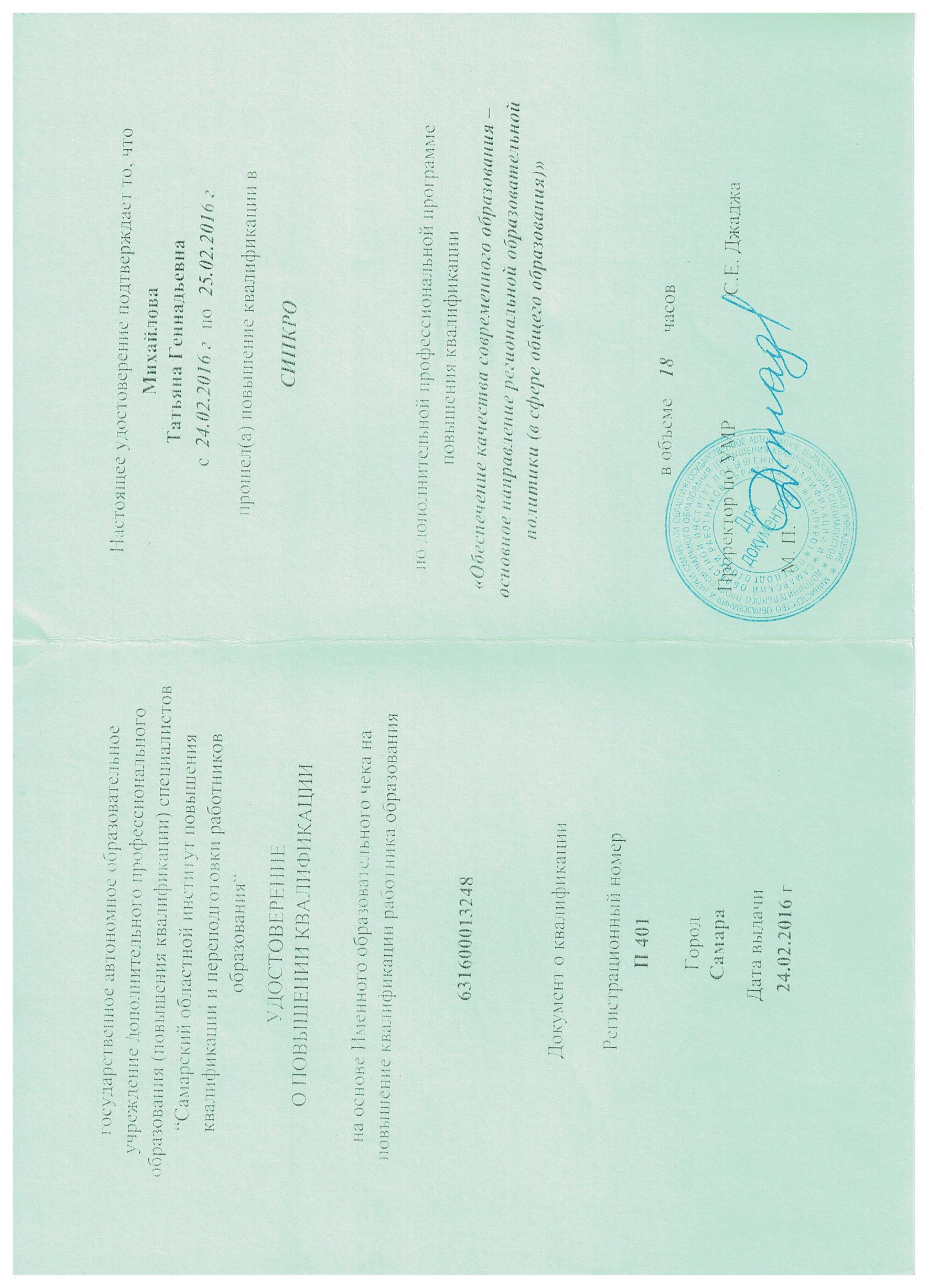 Обучение по курсу: Обеспечение качества современного образования-основное направление региональной образовательной политики. Документ о повышении квалификации: скачать