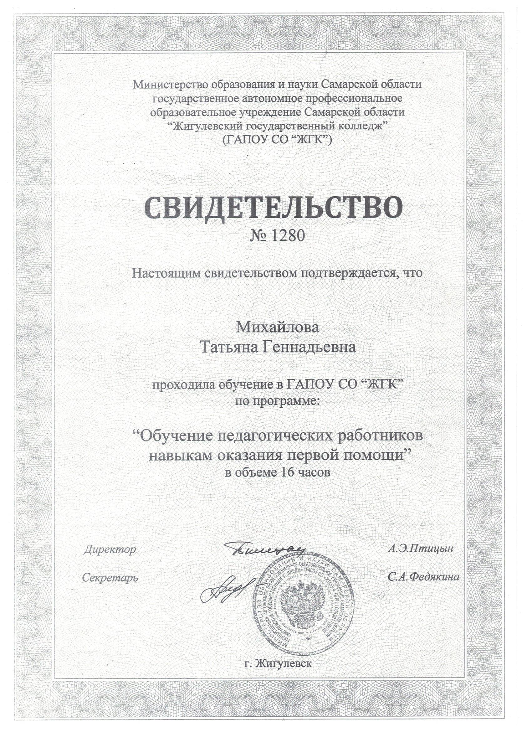 Обучение по курсу: Обучение педагогических работников навыкам оказания первой помощи. Документ о повышении квалификации: скачать