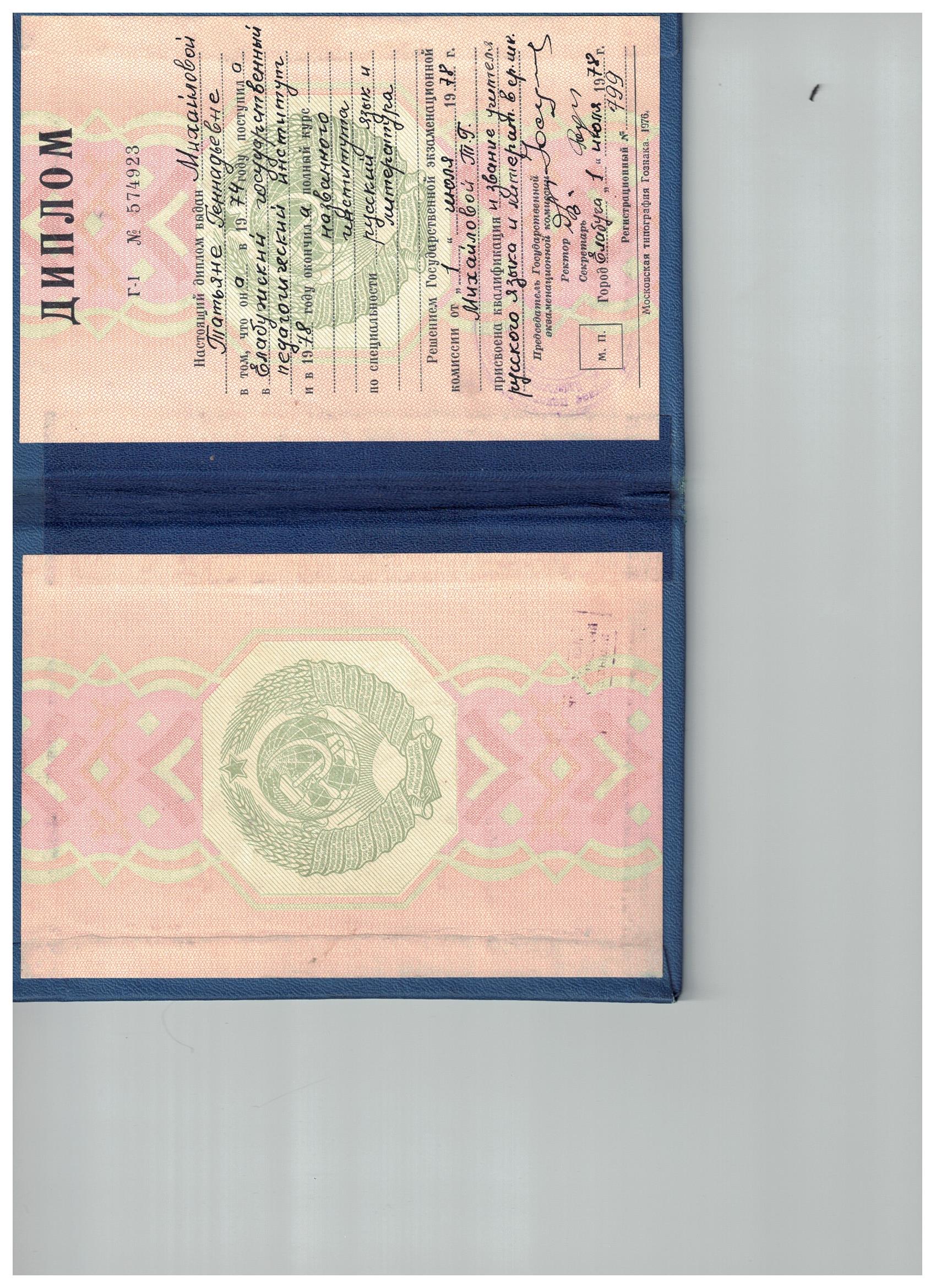 Образование по специальности: русский язык и литература. Присвоена квалификация: учитель русского языка и литературы. Документ о получении образования: скачать