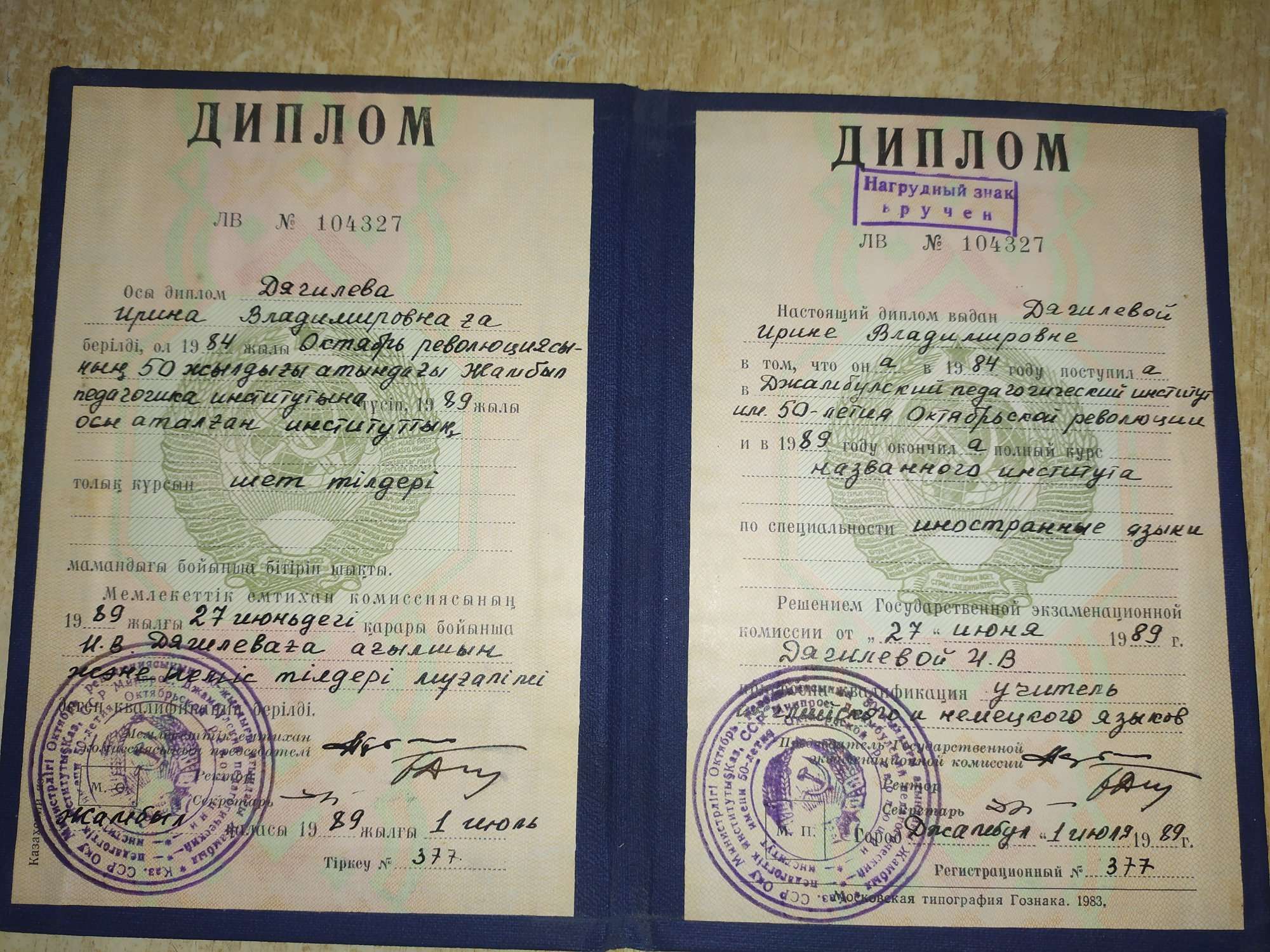 Образование по специальности: иностранные языки . Присвоена квалификация: учитель английского и немецкого языков. Документ о получении образования: скачать
