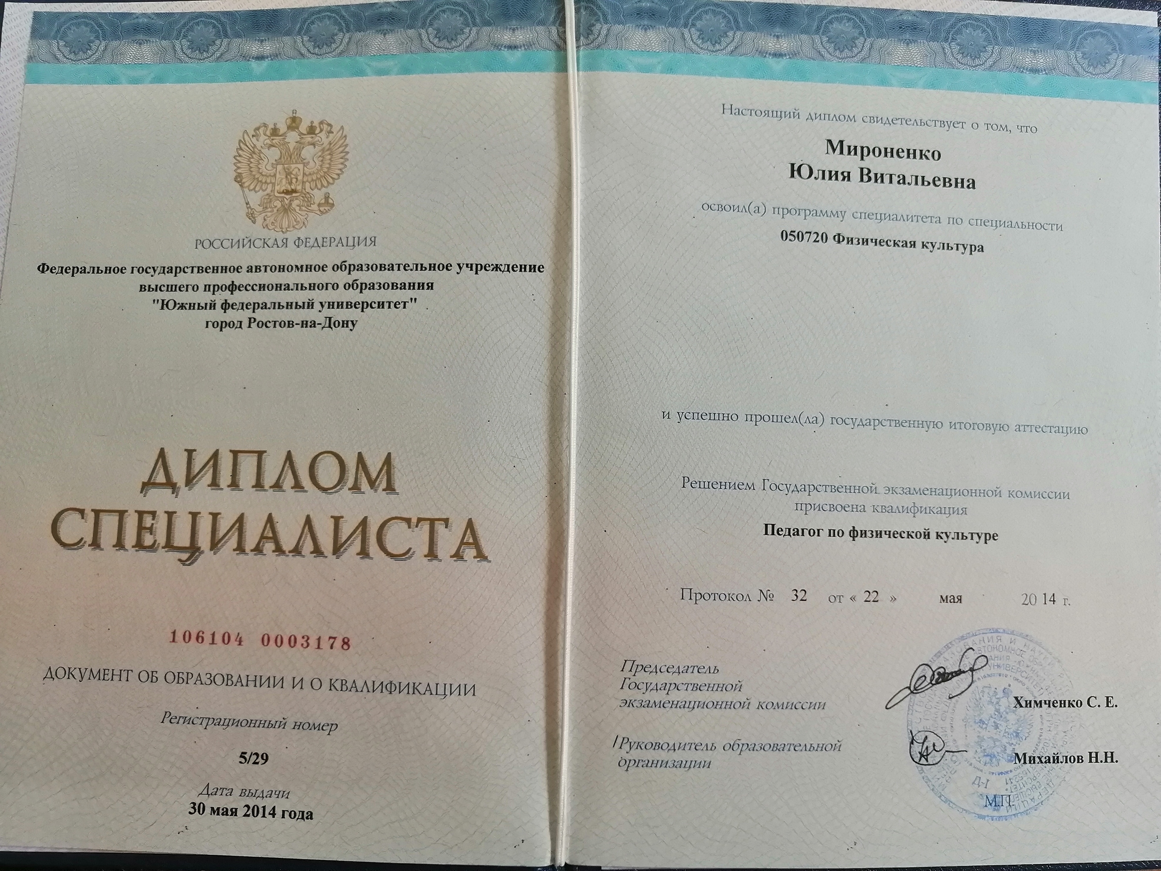 Присвоена квалификация: Педагог по физической культуре.