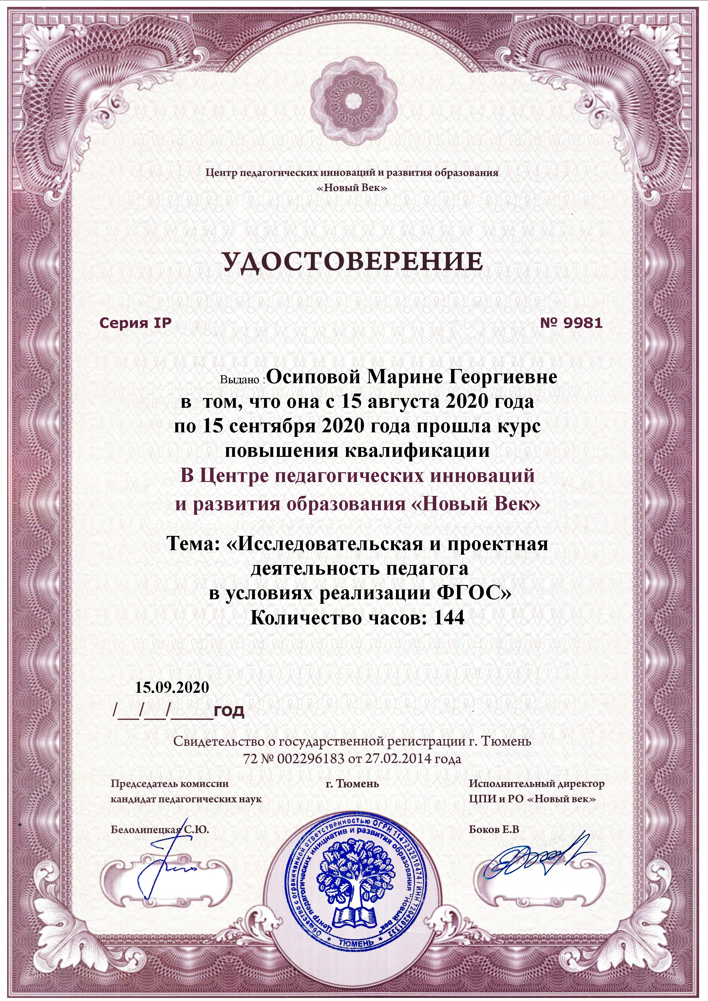 Обучение по курсу: "Исследовательская и проектная деятельность педагога в условиях реализации ФГОС" 144 ч.. Документ о повышении квалификации: скачать