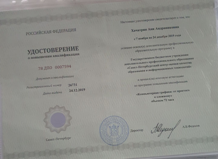Обучение по курсу: «Компьютерная графика: от простого к сложному». Документ о повышении квалификации: скачать