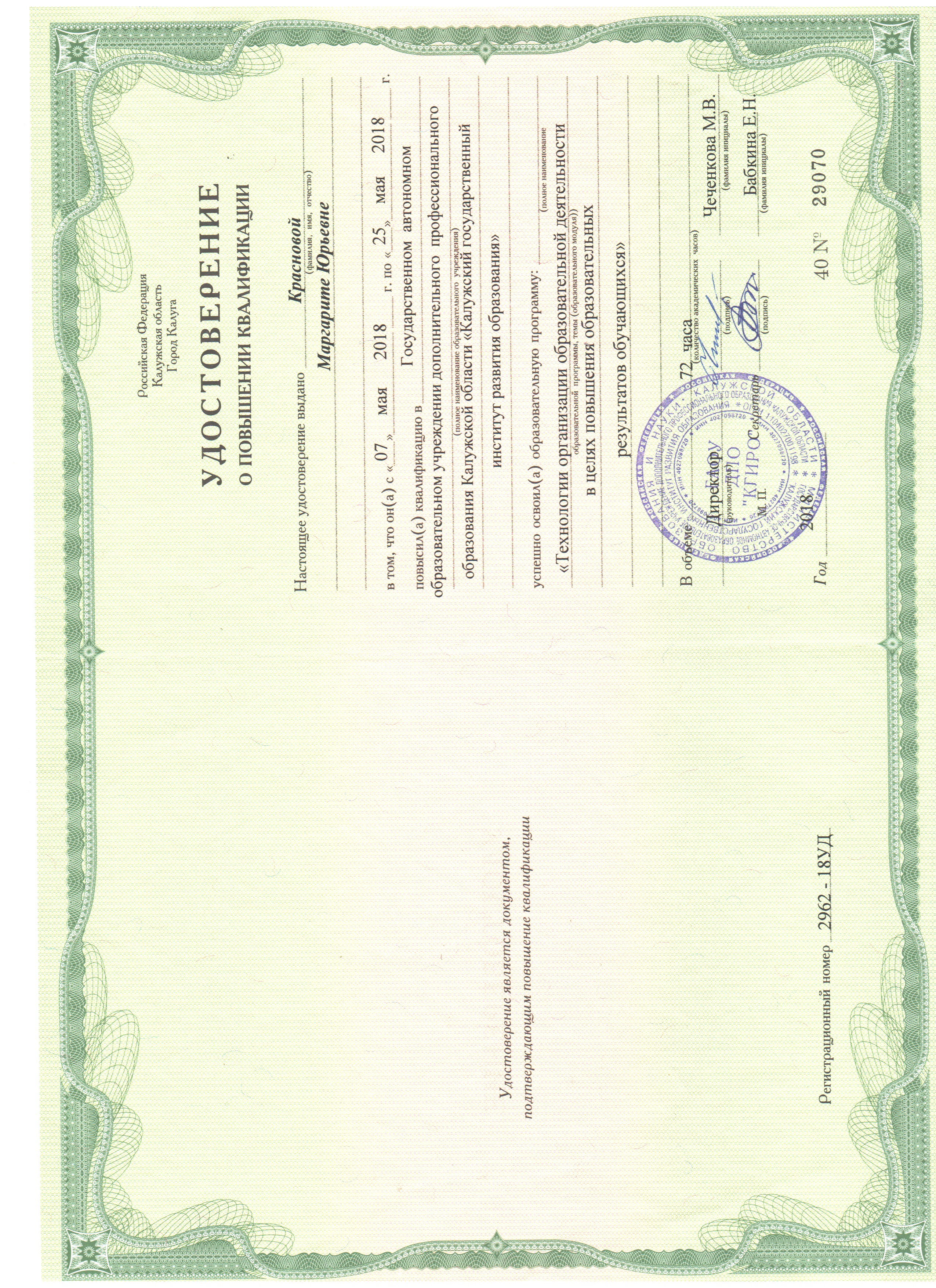 Обучение по курсу: Технологии организации образовательной деятельности в целях повышения образовательных результатов обучающихся. Документ о повышении квалификации: скачать