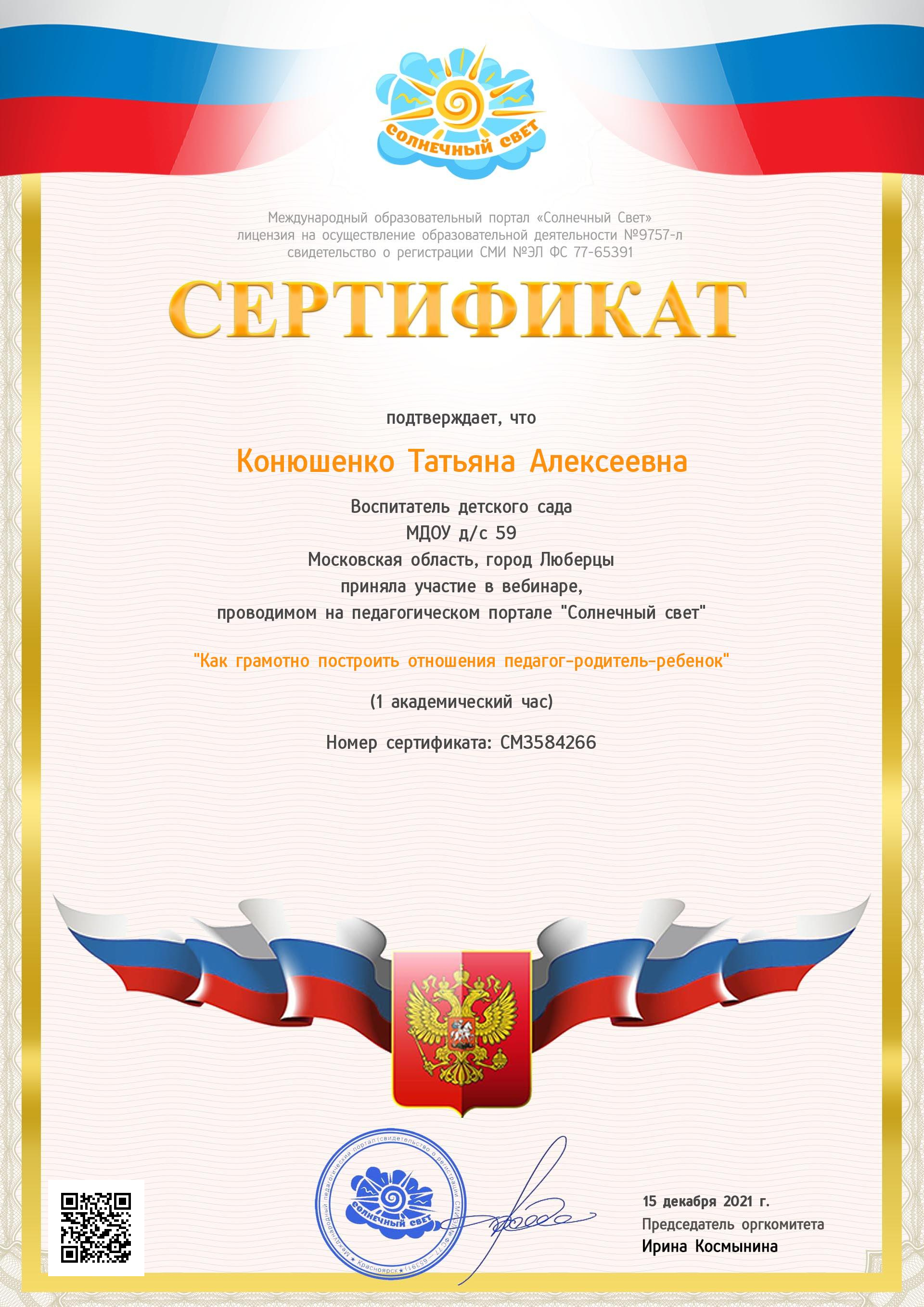 Обучение по курсу: "Как грамотно построить отношения педагог-родитель-ребёнок". Документ о повышении квалификации: скачать