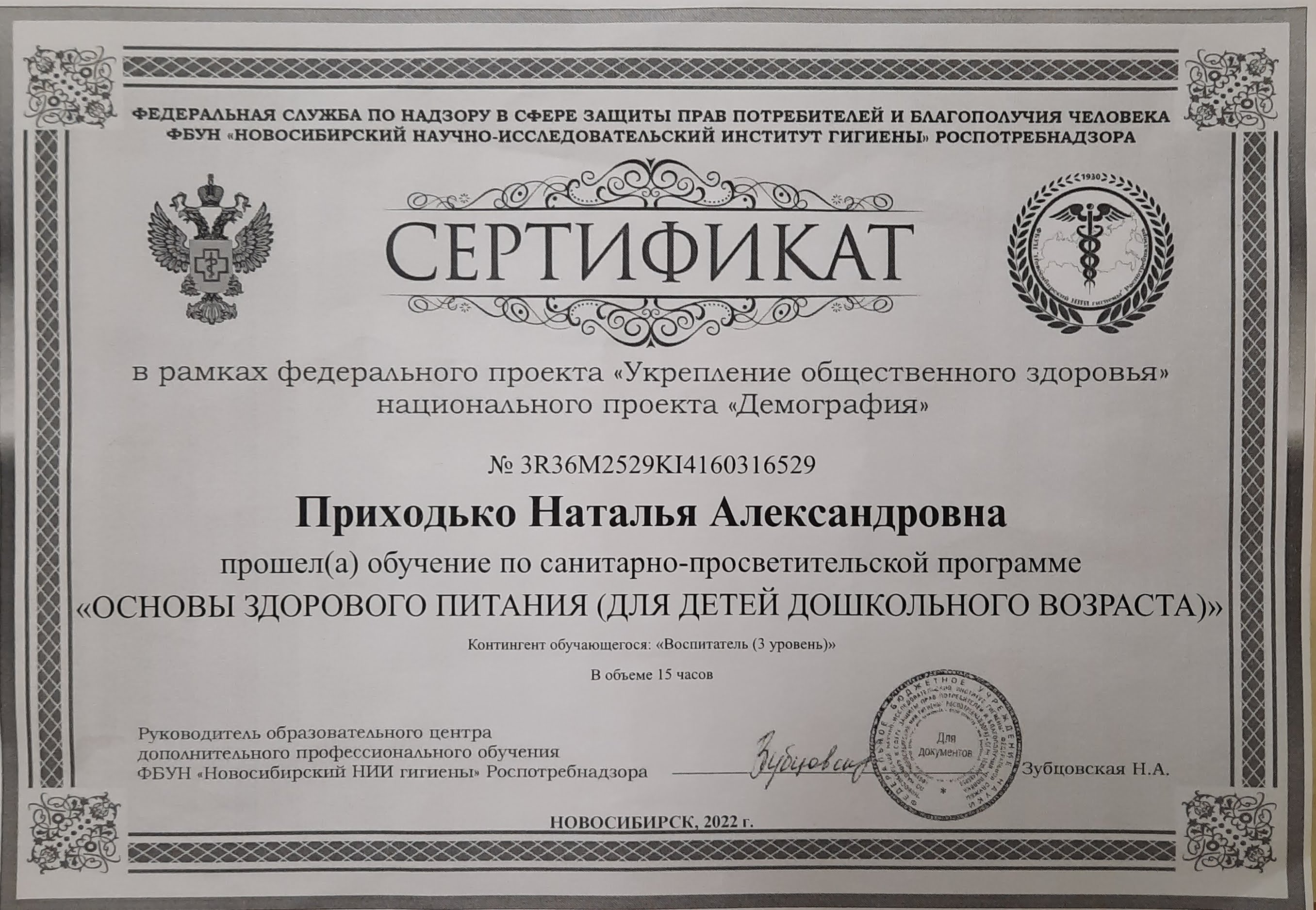 Обучение по курсу: Курс "Основы здорового питания (для детей дошкольного возраста)". Документ о повышении квалификации: скачать