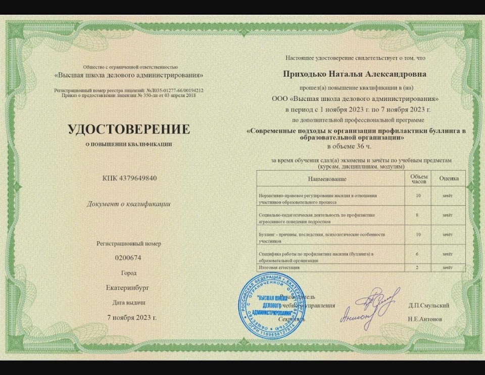 Обучение по курсу: "Современные подходы к организации профилактики буллинга в образовательной организации" 36часов. Документ о повышении квалификации: скачать