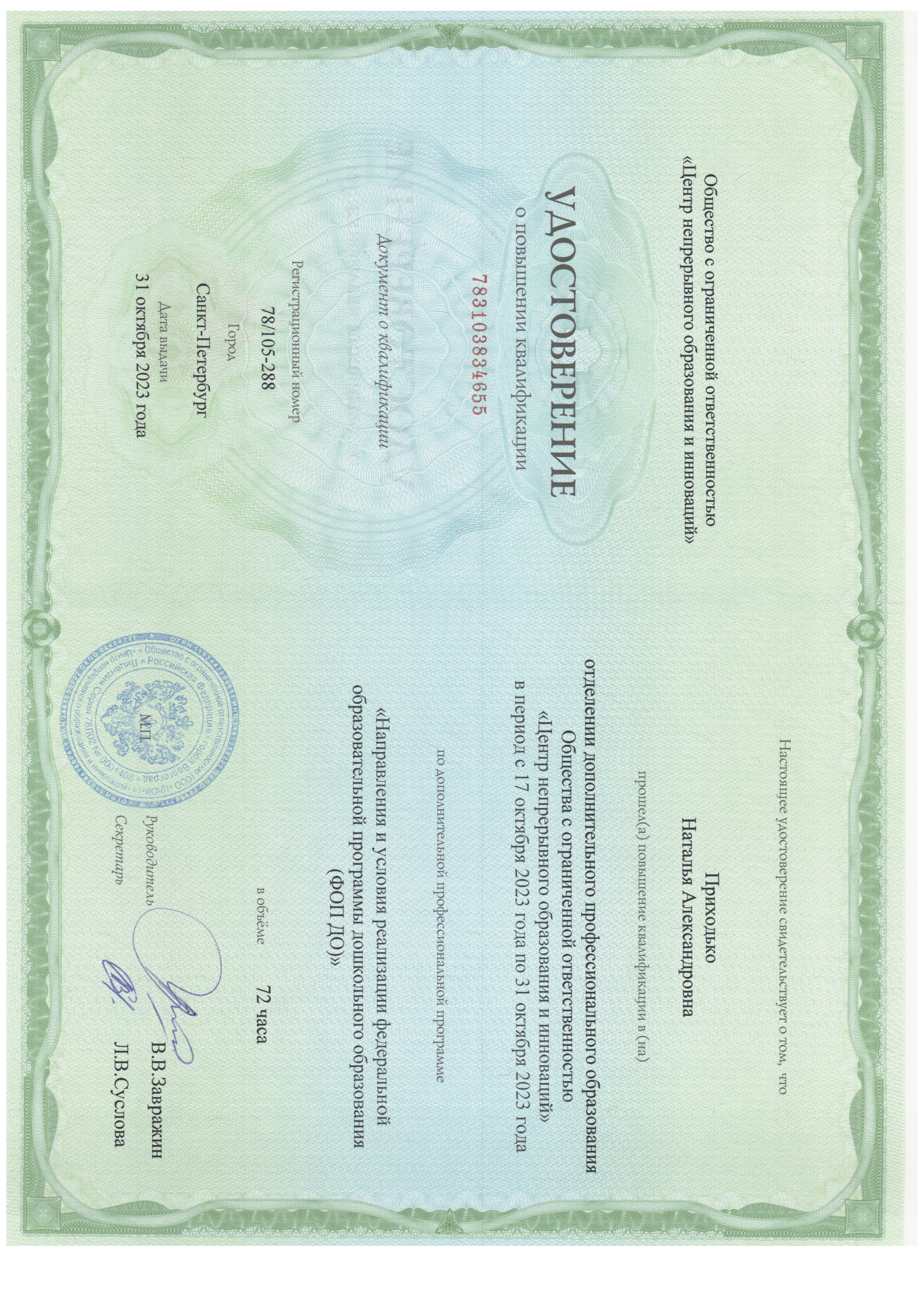 Обучение по курсу: "Направления и условия реализации федеральной образовательной программы дошкольного образования (ФОП ДО). Документ о повышении квалификации: скачать