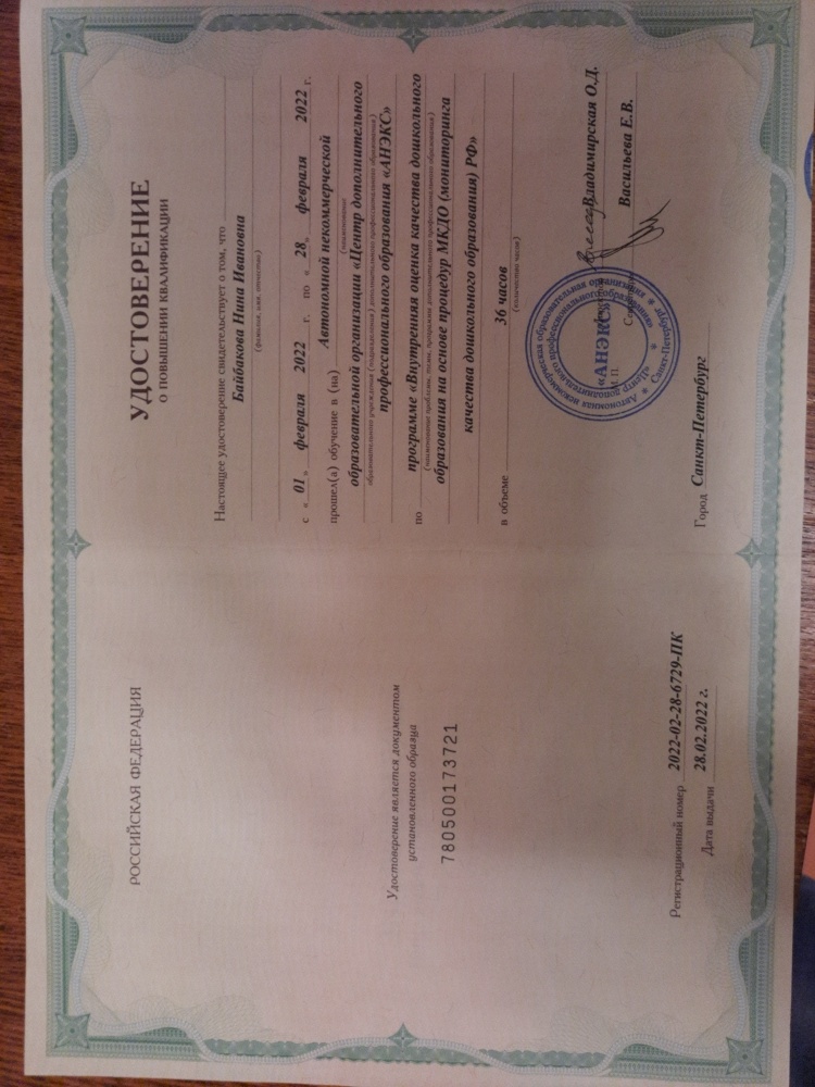 Обучение по курсу: Внутренняя оценка качества дошкольного образования на основе процедур МКДО (мониторинга качества дошкольного образования) РФ". Документ о повышении квалификации: скачать