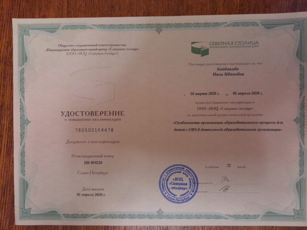 Обучение по курсу: Особенности организации образовательного процесса для детей с ОВЗ в дошкольной образовательной организации". Документ о повышении квалификации: скачать
