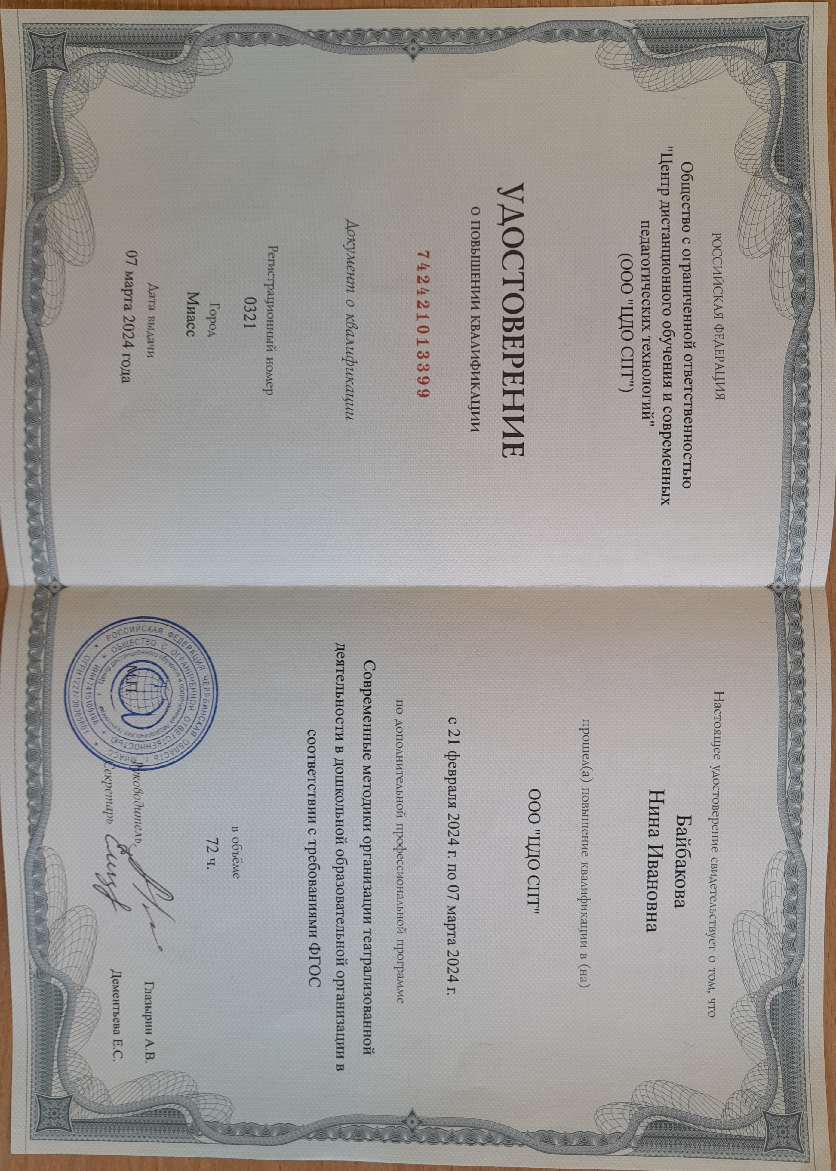 Обучение по курсу: Современные методикиорганизации театрализованной деятельности в дошкольной образовательной организации в соответствие с требованиями ФГОС. Документ о повышении квалификации: скачать