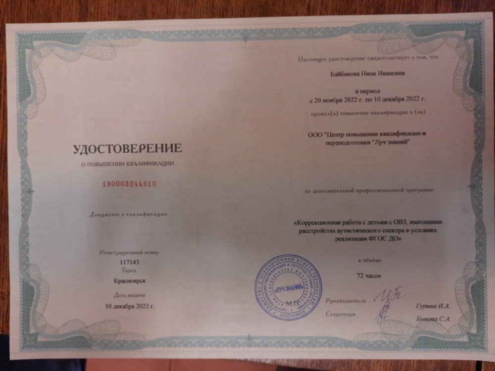 Обучение по курсу: Коррекционная работа с детьми с ОВЗ, имеющими расстройства аутического спектра в условиях реализации ФГОС ДО". Документ о повышении квалификации: скачать