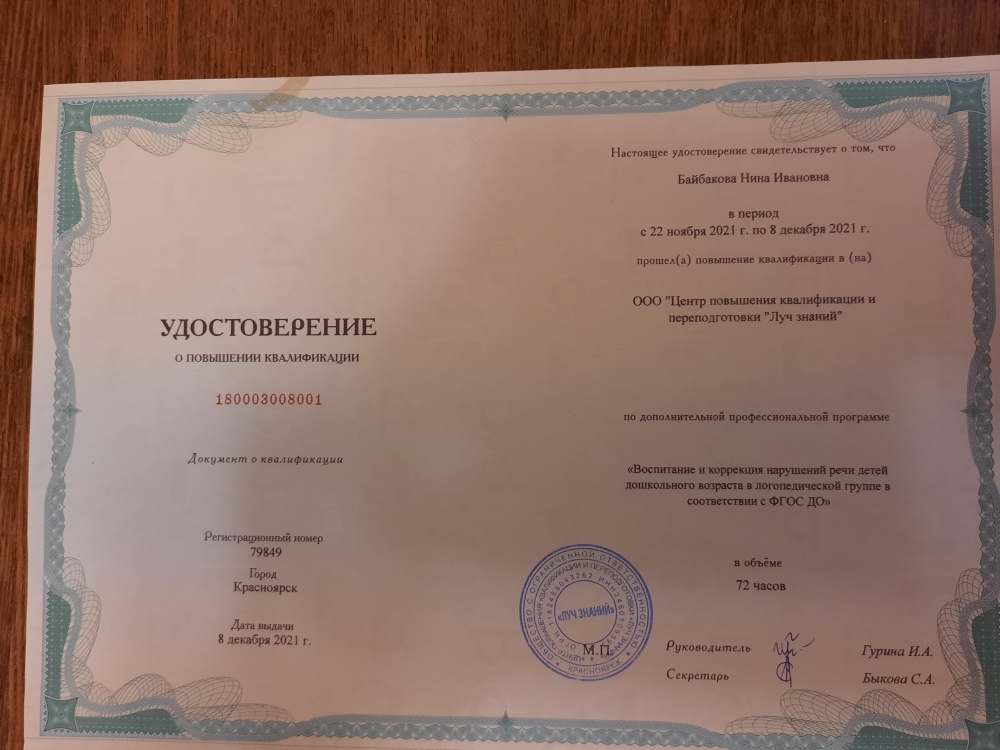 Обучение по курсу: Воспитание и коррекция нарушений речи детей дошкольного возраста в логопедической группе в соотвествии в ФГОС ДО". Документ о повышении квалификации: скачать