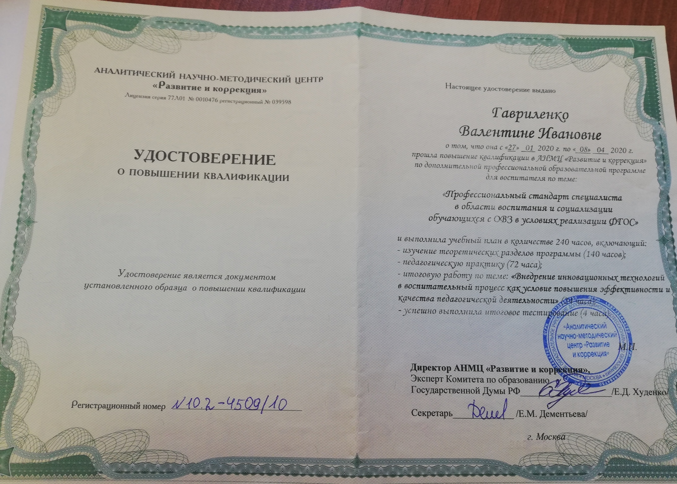 Обучение по курсу: Профессиональный стандарт специалиста в области воспитания и социализации обучающихся с ОВЗ в условиях реализации ФГОС". Документ о повышении квалификации: скачать