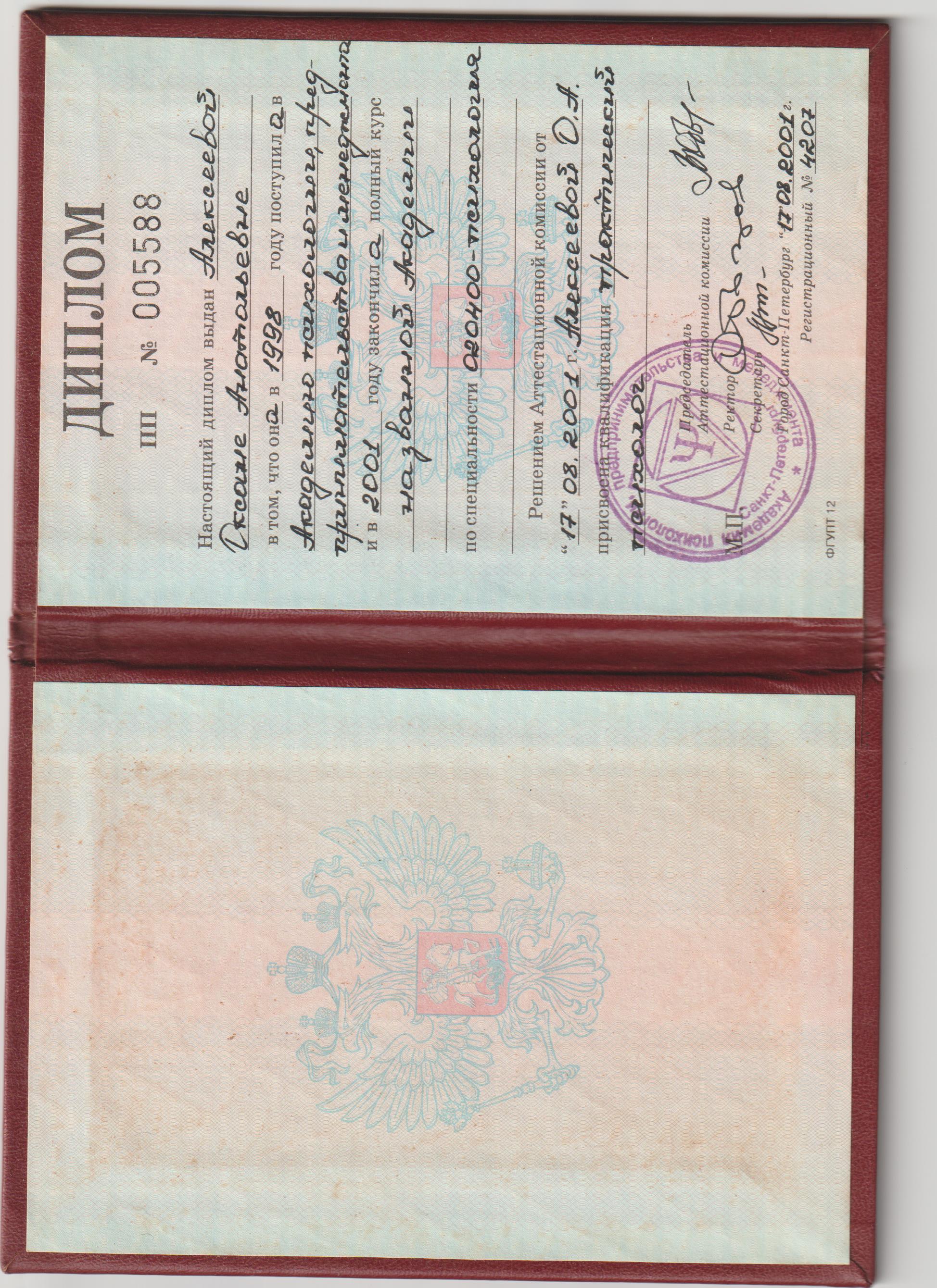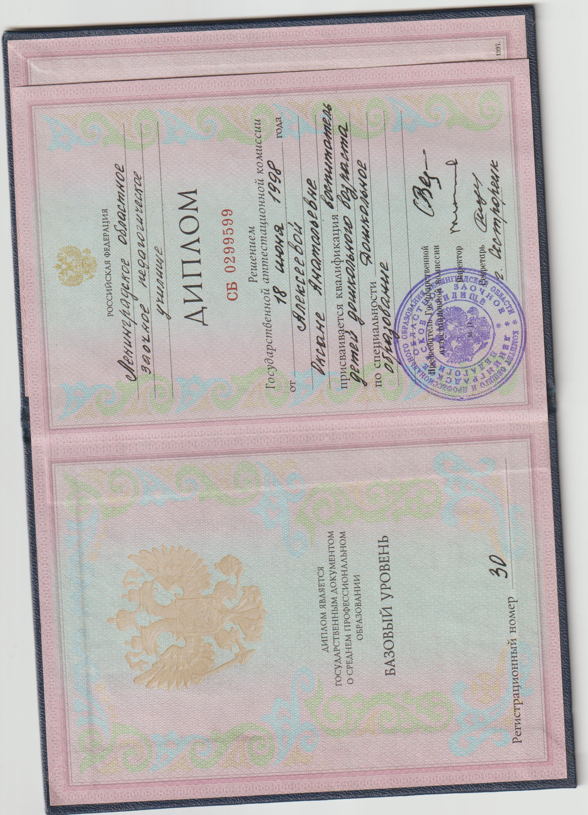 Образование по специальности: 020400 - психология. Присвоена квалификация: Практический психолог. Документ о получении образования: скачать