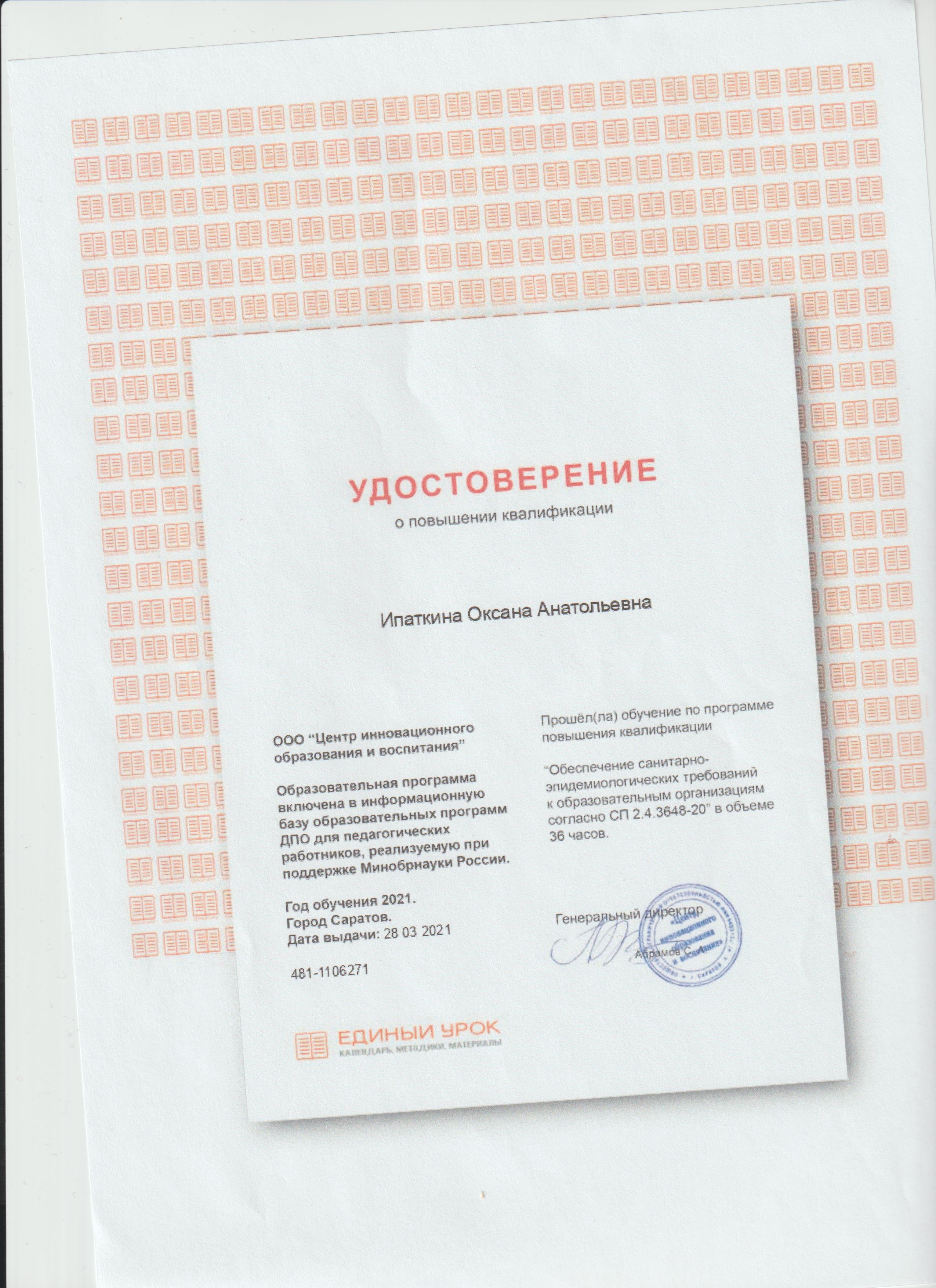 Обучение по курсу: Обеспечения санитарно - эпидемиологических требований к образовательным организациям". Документ о повышении квалификации: скачать