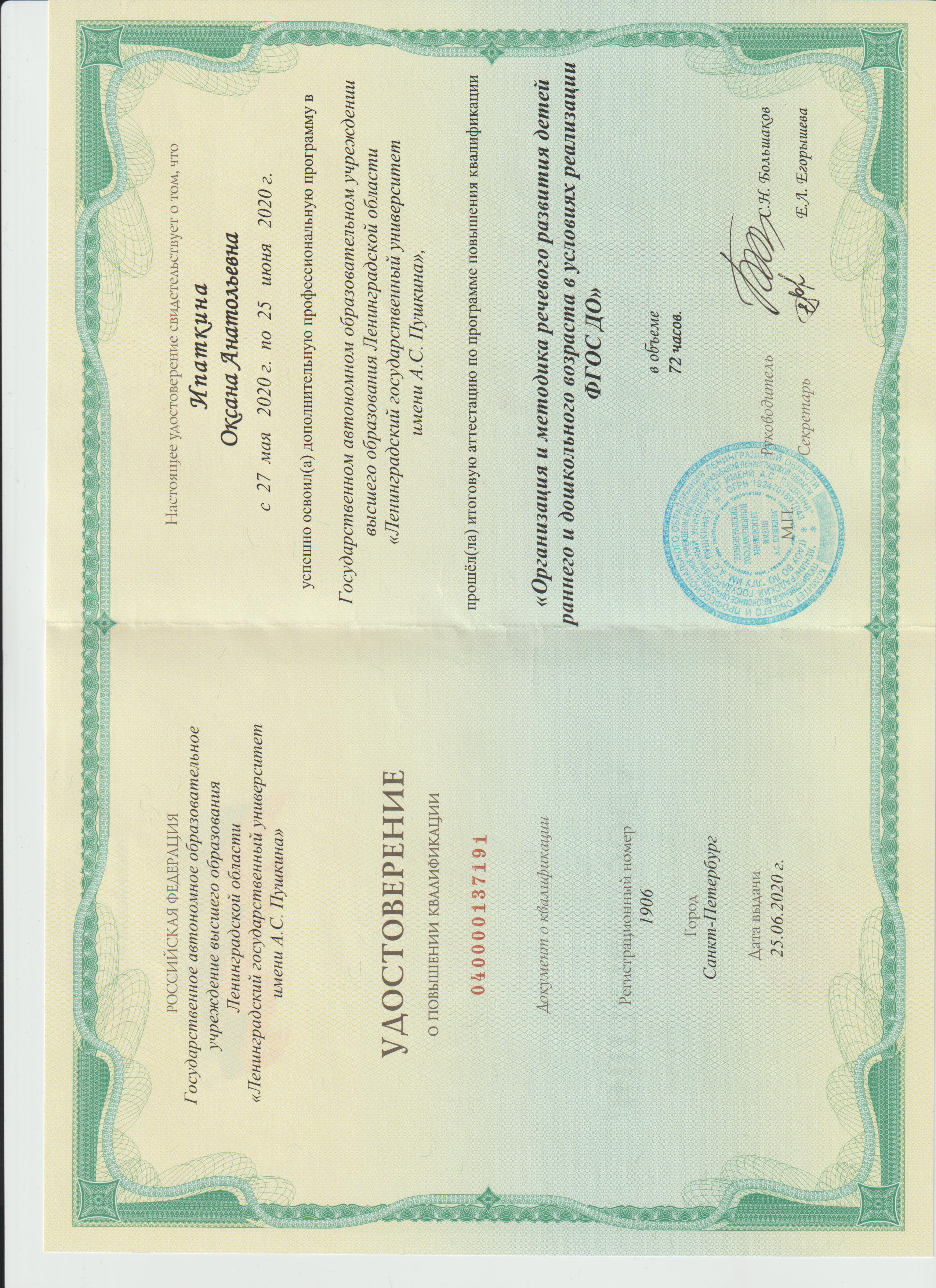 Обучение по курсу: "Организация и методика речевого развития детей раннего и дошкольного возраста в условиях оеализации ФГОС ДО". Документ о повышении квалификации: скачать