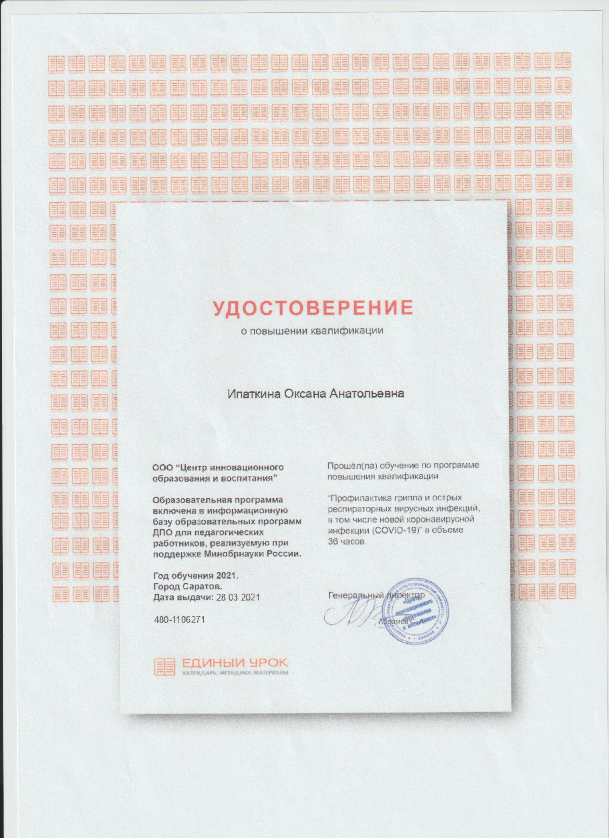 Обучение по курсу: "Прфилактика гриппа, ОРВИ и COVID - 19". Документ о повышении квалификации: скачать
