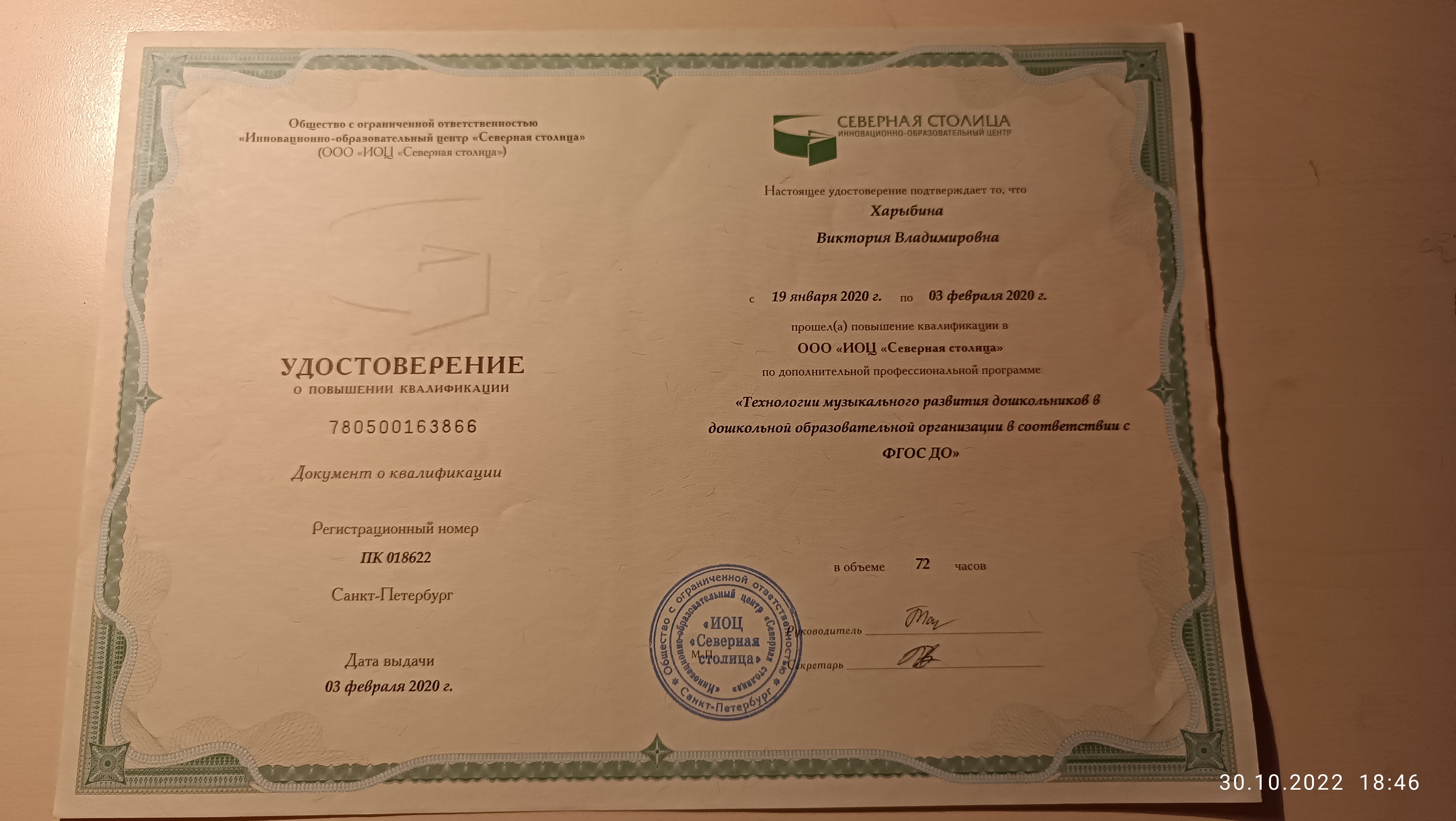 Обучение по курсу: "Технологии музыкального развития дошкольников в дошкольной образовательной организации в соответствии с ФГОС ДО" . Документ о повышении квалификации: скачать