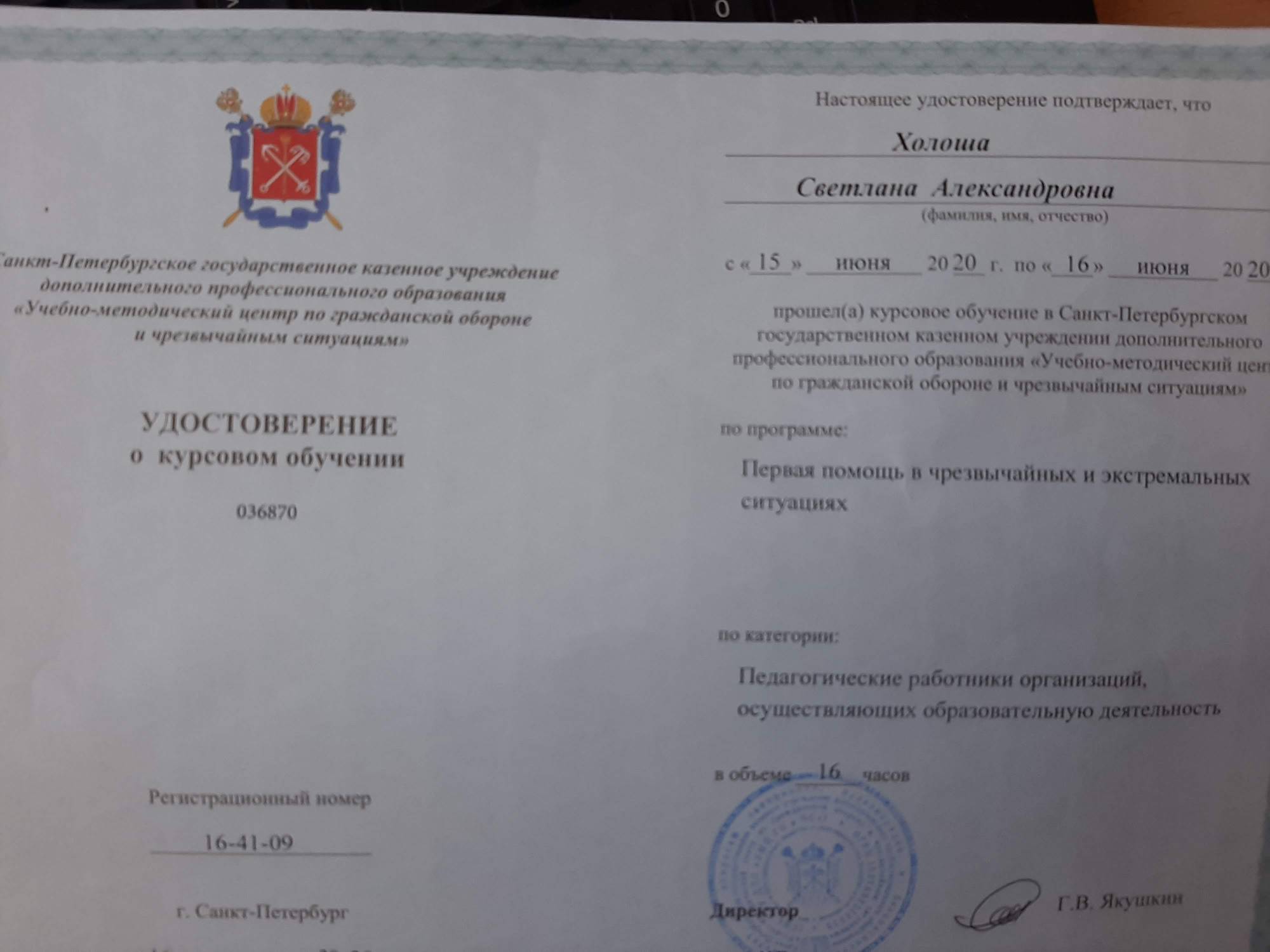Образование по специальности: Учитель истории. Присвоена квалификация: Учитель истории и социально-гуманитарных дицыплин. Документ о получении образования: скачать
