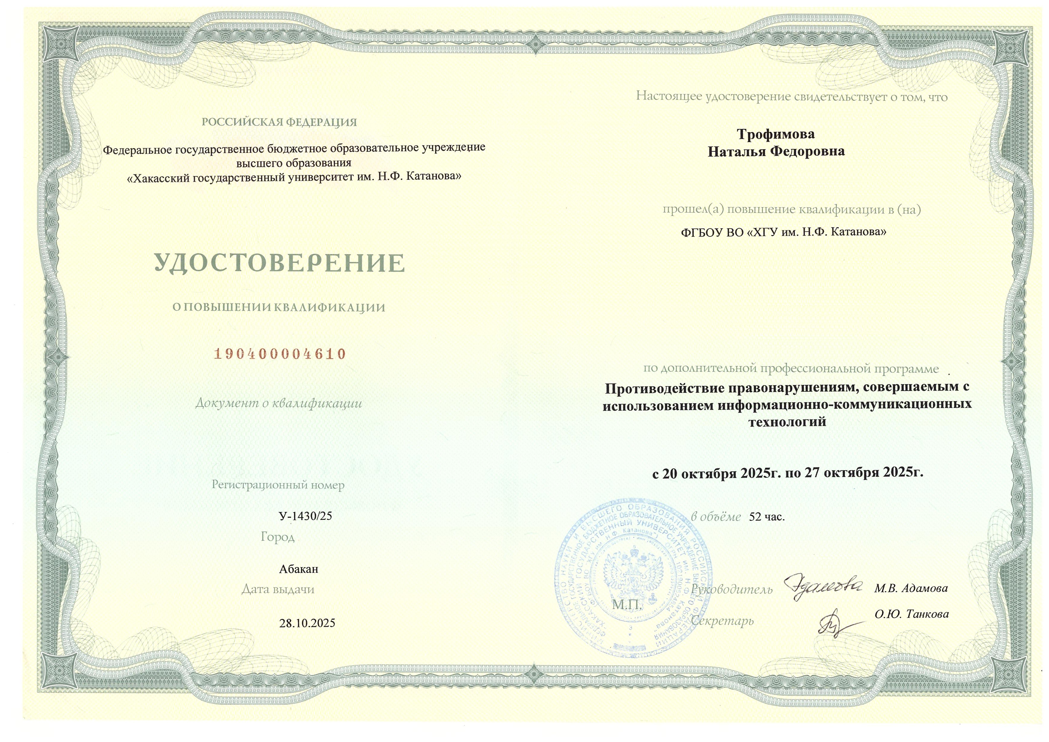 Обучение по курсу: Противодействие правонарушениям, совершаемым с использованием информационно-коммуникационных технологий. Документ о повышении квалификации: скачать