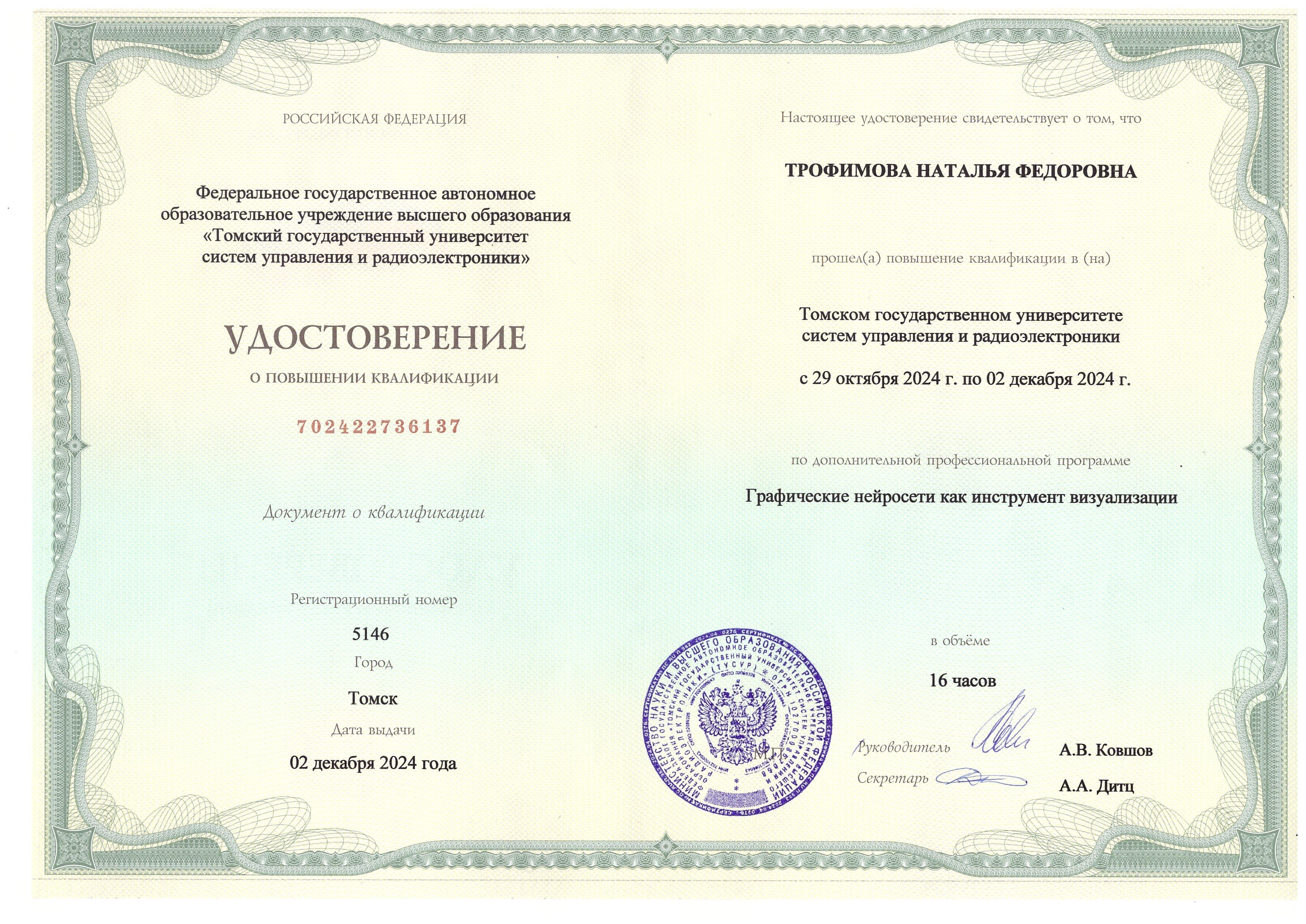 Обучение по курсу: Графические нейросети как инструмент визуализации. Документ о повышении квалификации: скачать