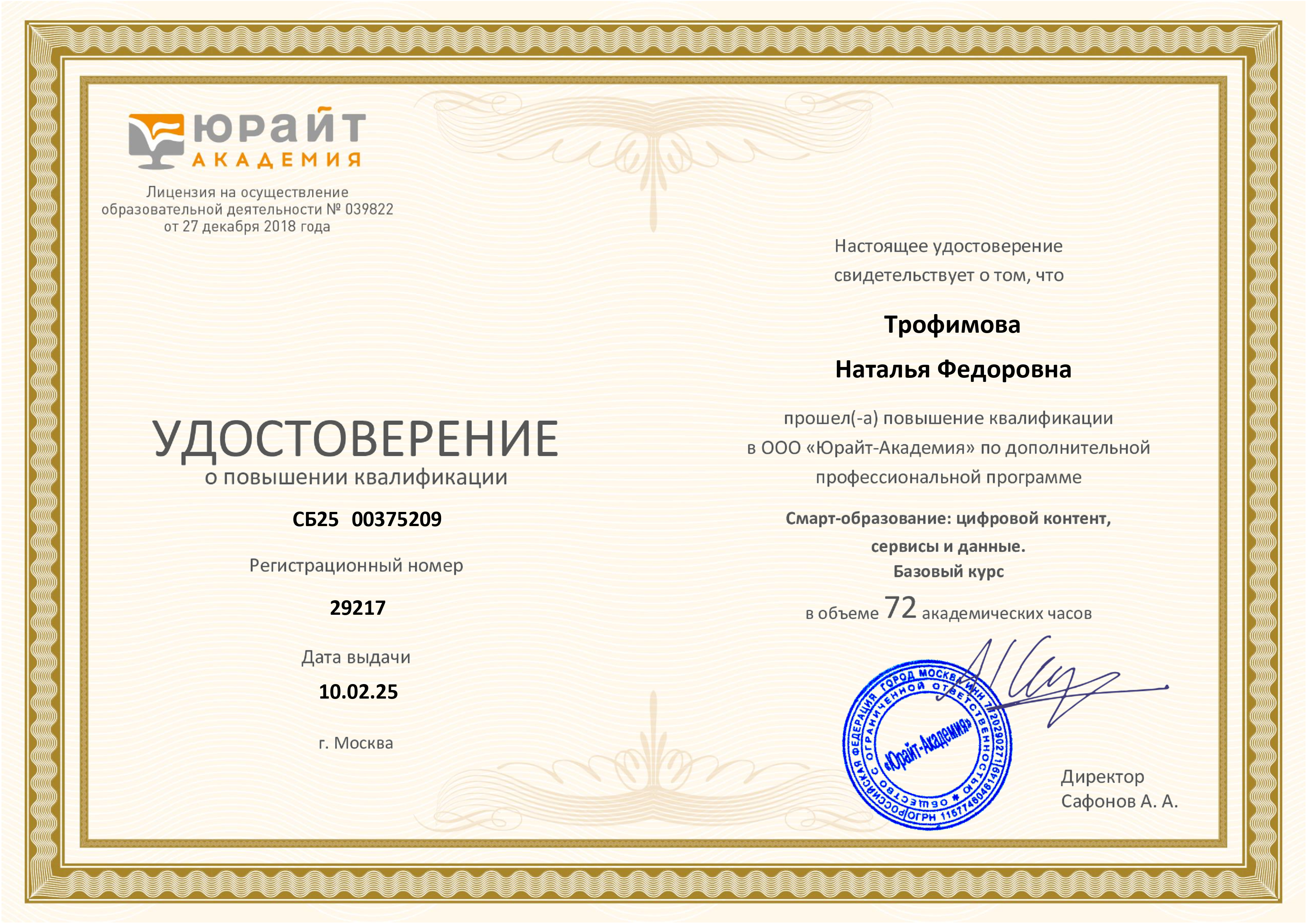 Обучение по курсу: Смарт-образование: цифровой контент, сервисы и данные. Базо-вый курс. Документ о повышении квалификации: скачать