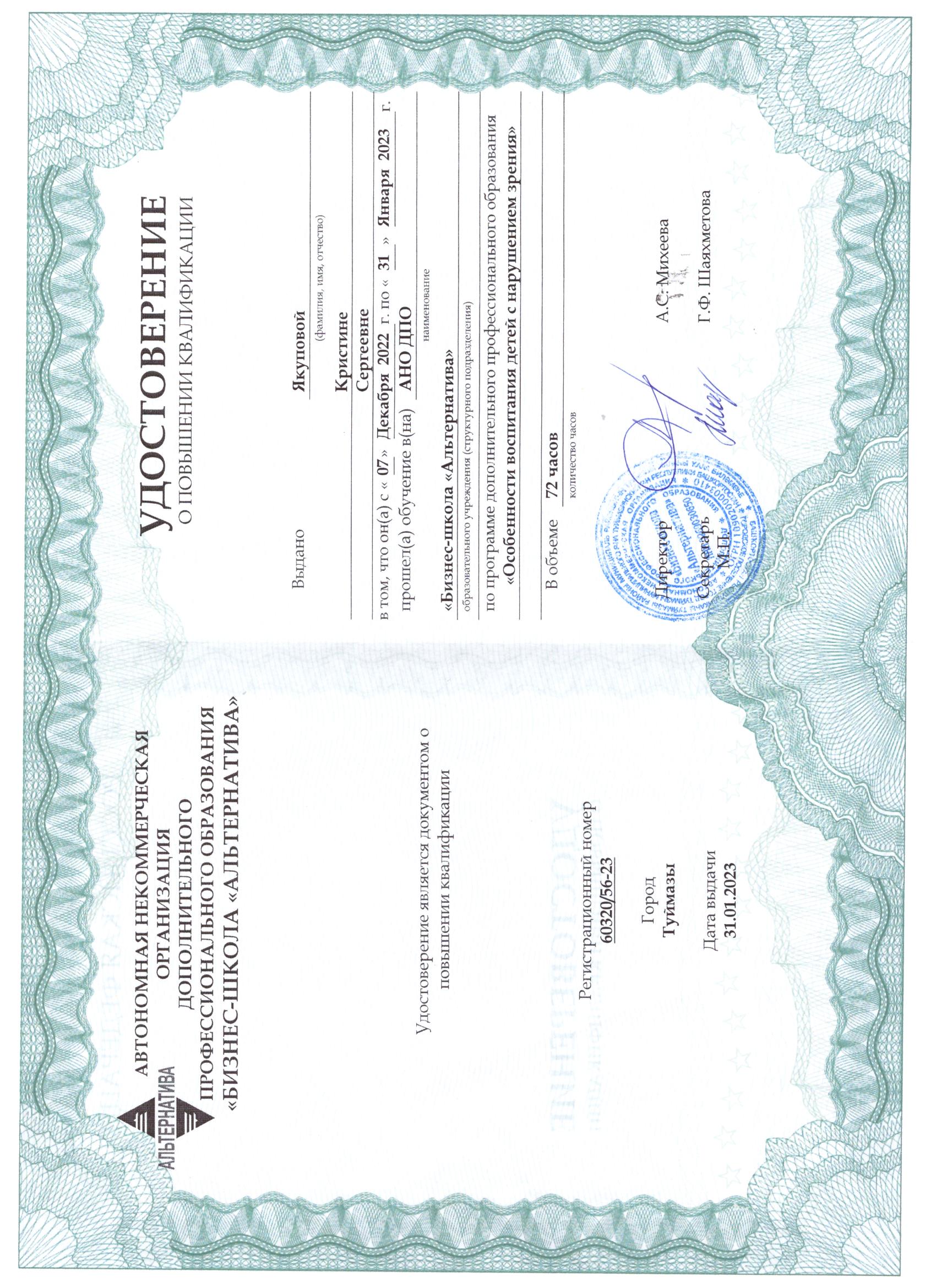 Обучение по курсу: Особенности воспитания детей с нарушением зрения. Документ о повышении квалификации: скачать