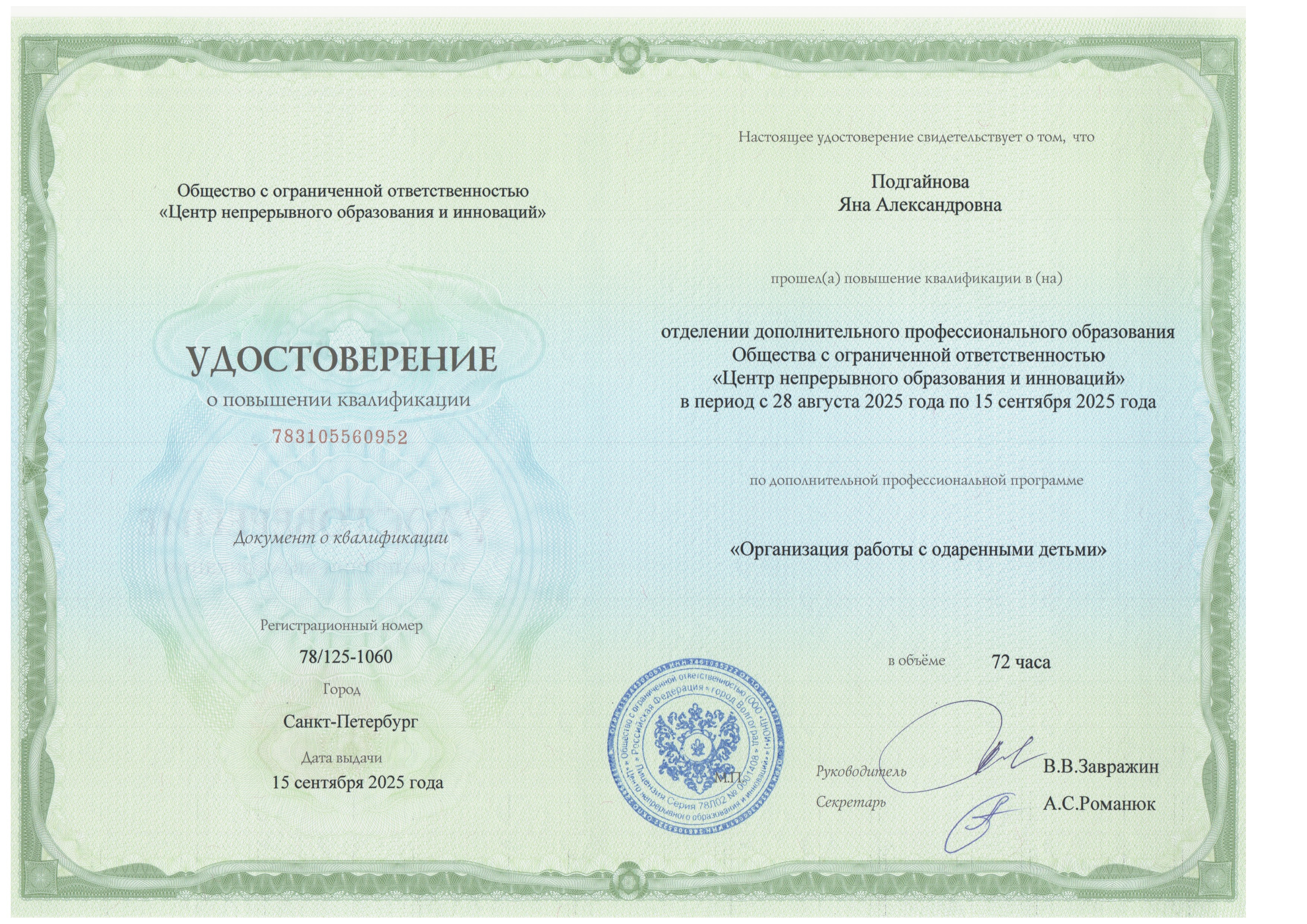 Обучение по курсу: Организация работы с одаренными детьми. Документ о повышении квалификации: скачать